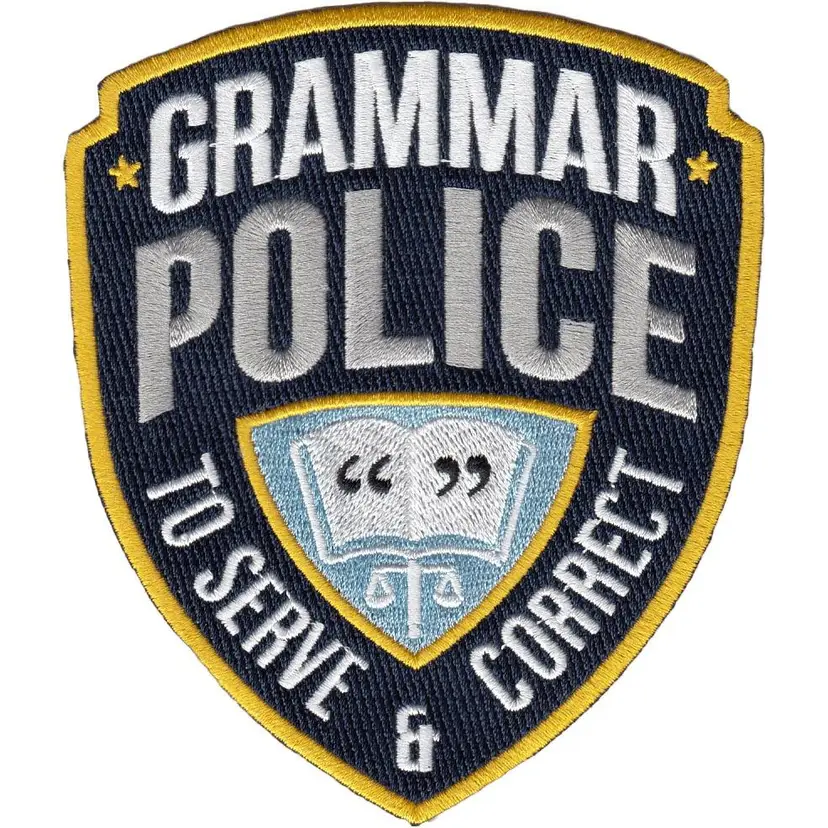 Fully embroidered patch is expertly crafted and stitched. This patch is a fantasy design for for the Grammar Police Department who’s mission is “To Serve and Correct.”