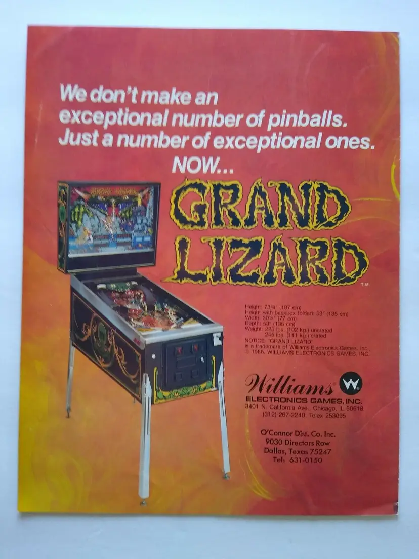 Model: Grand Lizard Pinball: Flyer Modified Item: No Country/Region of Manufacture: United States Year: 1986 Brand: Williams