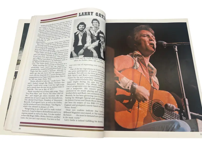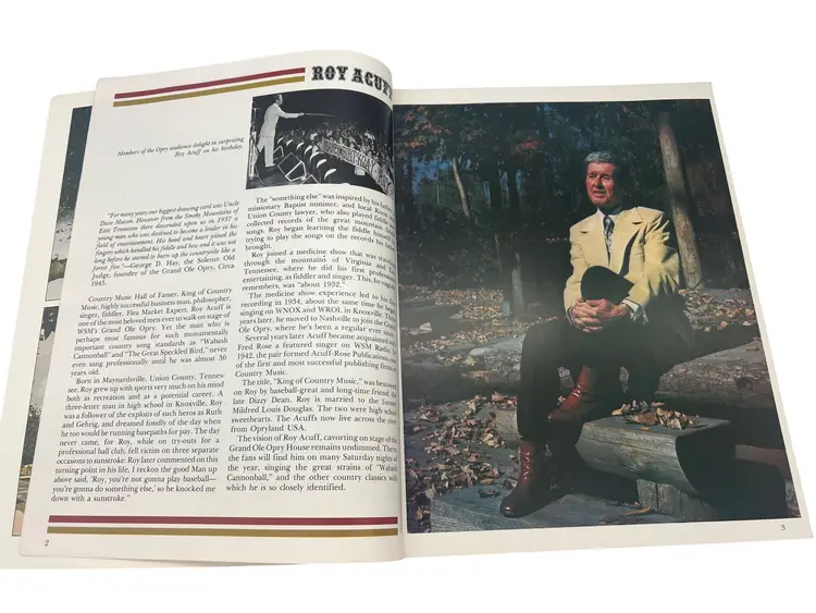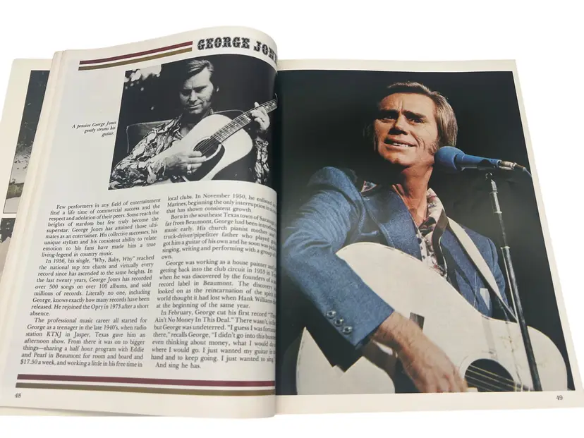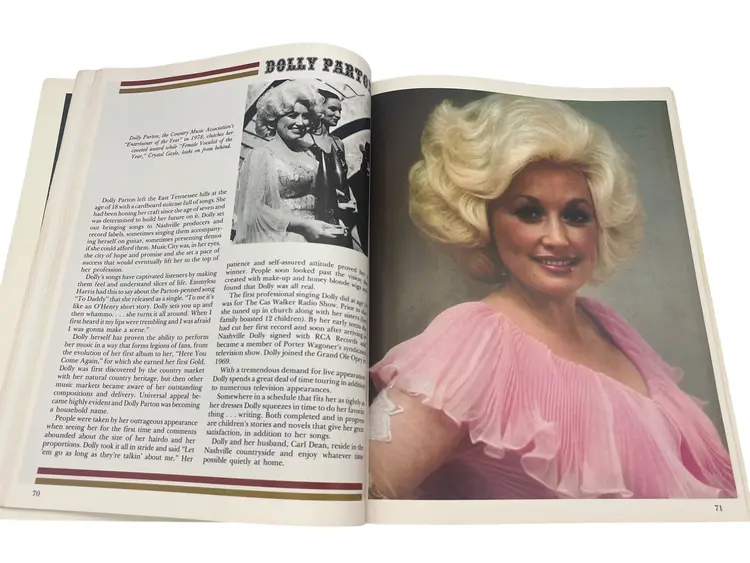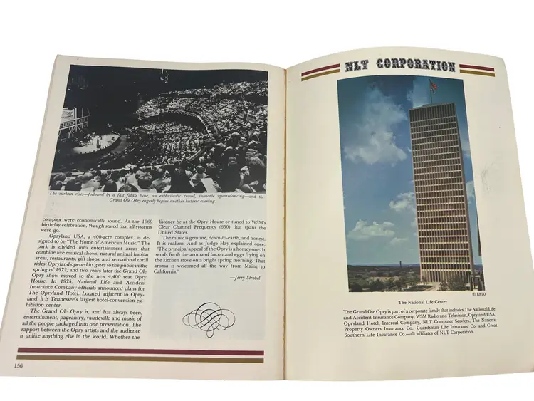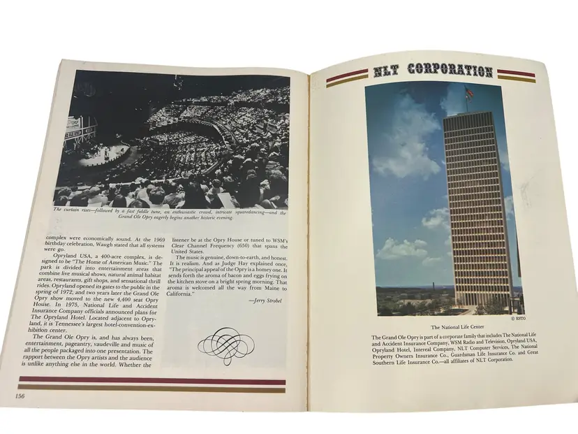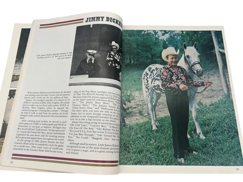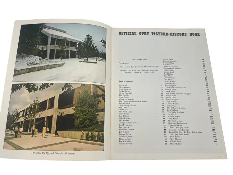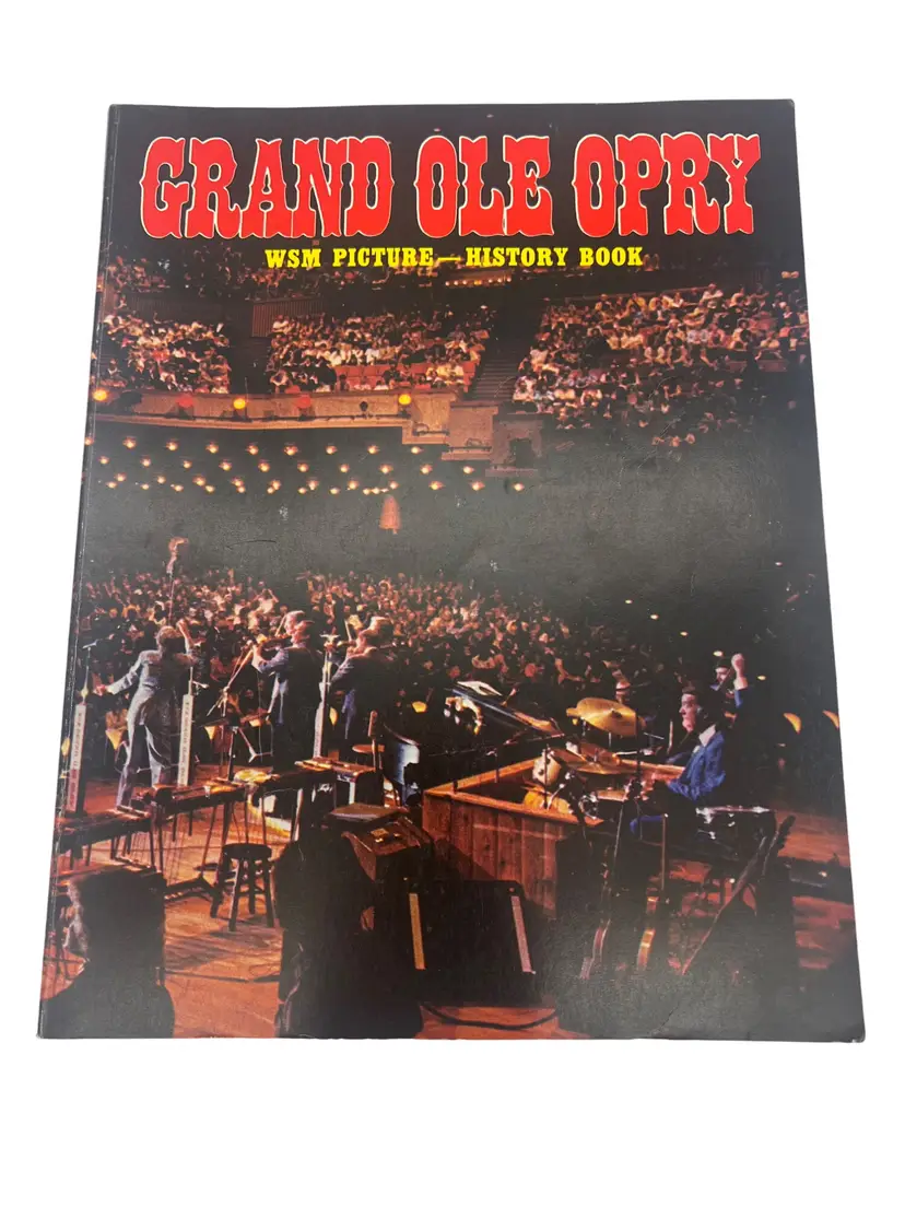 Vintage 1979 Grand Ole Opry: WSM Picture-History Book (Vol 7, Edition 1). Paperback, approximately 11″ × 8.5″, 156 full-color illustrated pages. Highlights iconic Opry stars like Roy Acuff, Dolly Parton, Loretta Lynn, George Jones and more. Perfect for country-music fans and Opry collectors.