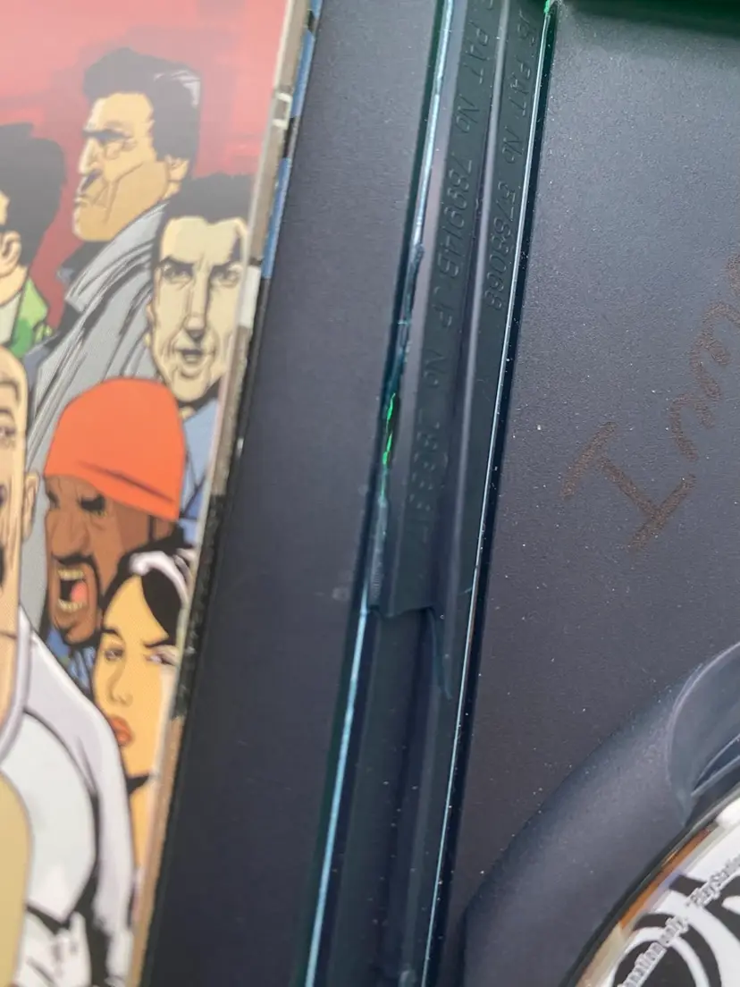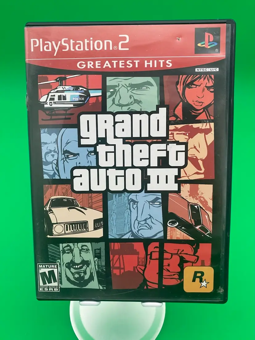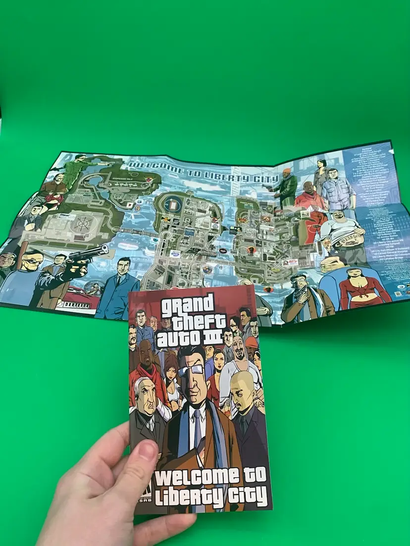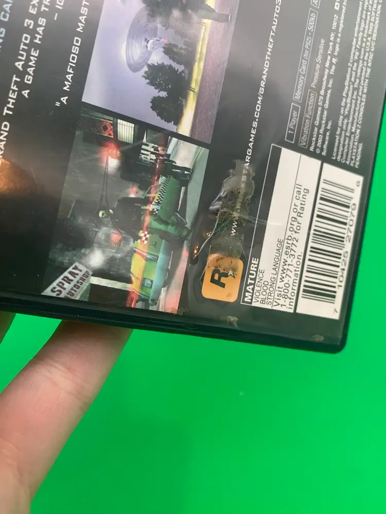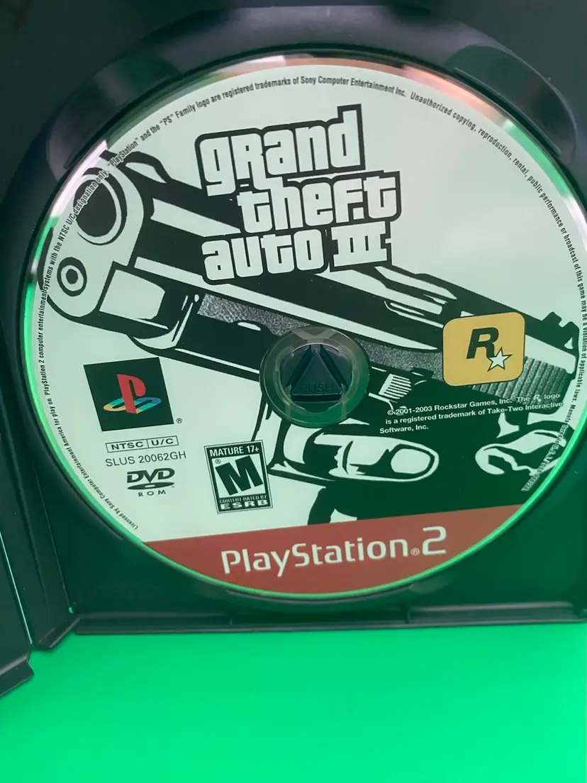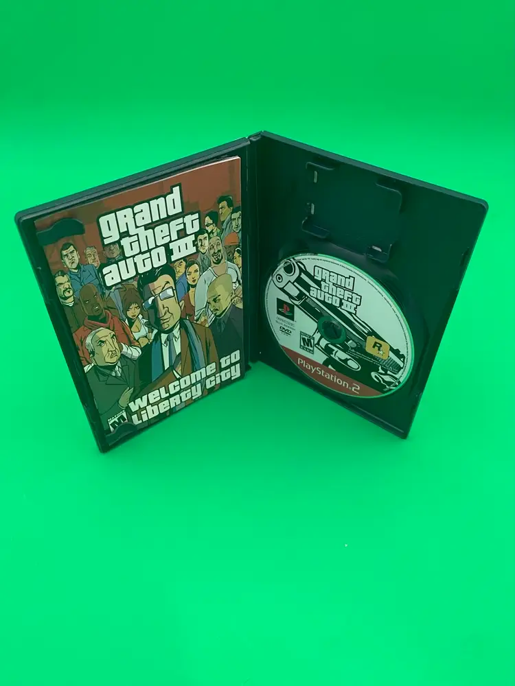 You are purchasing one Grand Theft Auto III PlayStation 2 Video Game by Rockstar from 2003. Complete with Inlay, Manual, and Map/Poster. This Game is in overall good condition. No rips or stains on the Manual or Map/Poster. Minimal signs of wear on the Disc - tested in playable condition without issues. See final three images for wear on the back, marker on the case interior, and crack in the spine of the case.
