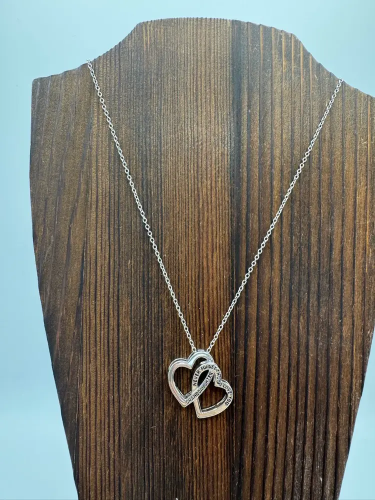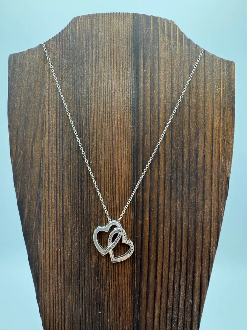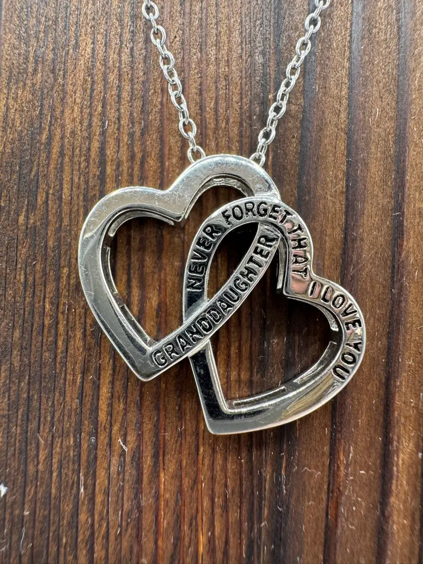 Beautiful vintage double heart necklace. Reads never forget I love you granddaughter. Excellent condition. Measures 16“ with 2” extender.