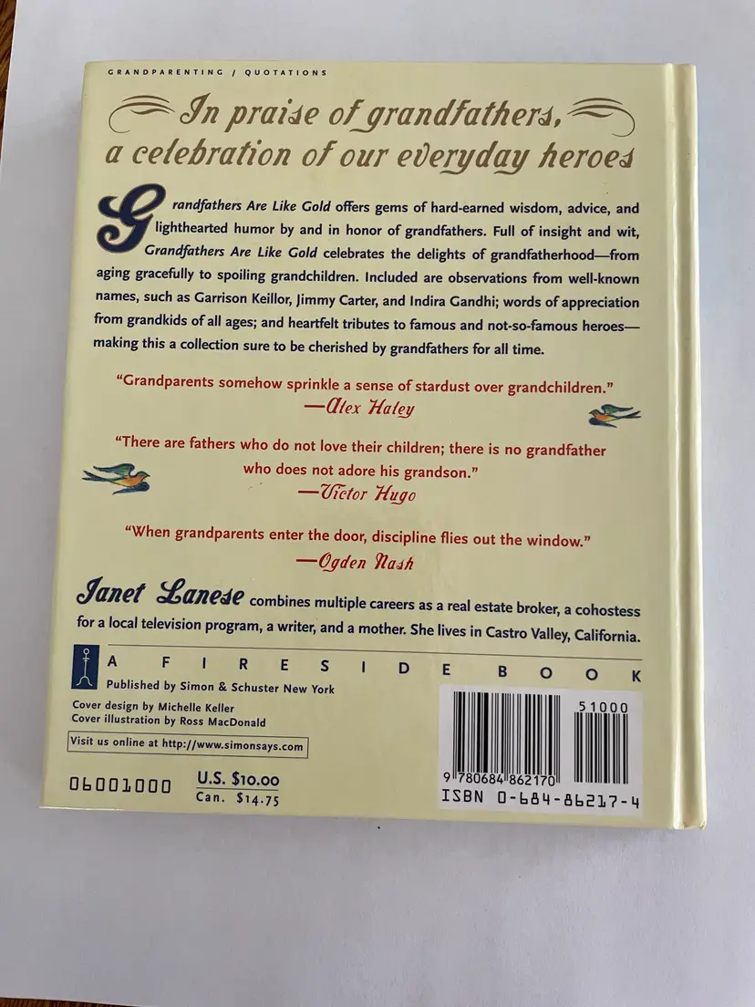 Grandfathers Are Like Gold Every Family's Treasure book by Janet Lanese Perfect for Father's Day or Birthdays! Words of inspiration and wit from famous and not-so-famous people. Wonderful for kids and grandfathers alike!