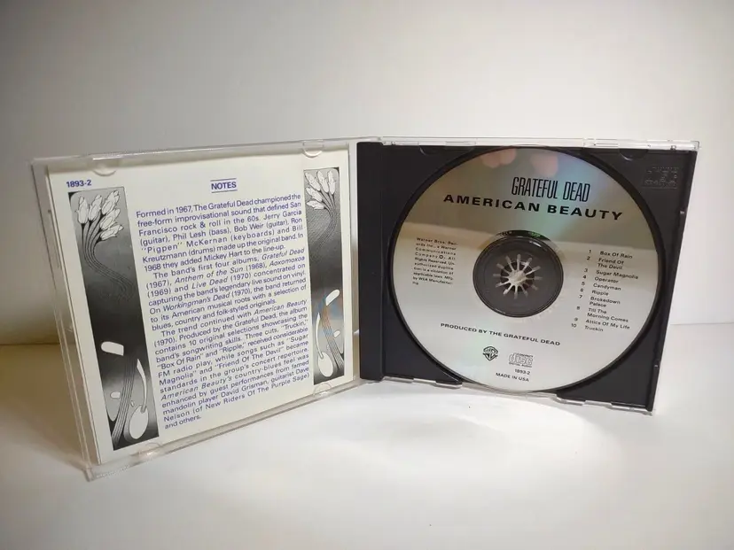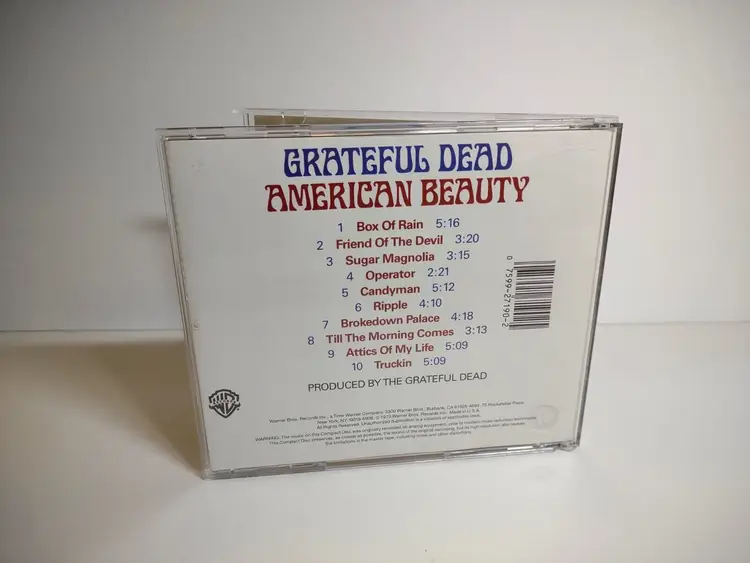 Artist: Grateful Dead CD Grading: Good Plus (G+) Record Label: Warner Bros. Release Title: American Beauty Case Type: Jewel Case: Standard Custom Bundle: No Color: Silver Case Condition: Very Good Plus (VG+) Inlay Condition: Excellent (EX) Modified Item: No Edition: Reissue Type: Album Format: CD Language: English Release Year: Unknown Style: Classic Rock, Folk Rock Features: Original Inner Sleeve Genre: Rock Country/Region of Manufacture: United States