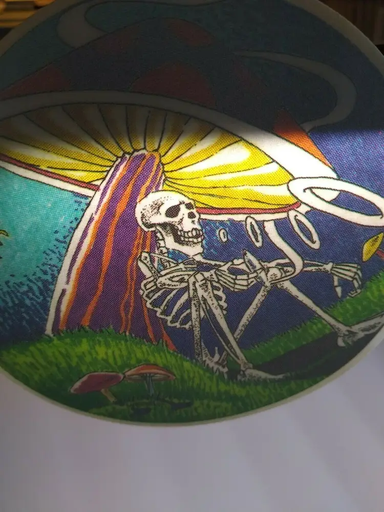 Original vintage Grateful Dead artwork window sticker decal. Has peel off backing to apply to car window. More Grateful Dead items and music memorabilia for sale in our store.