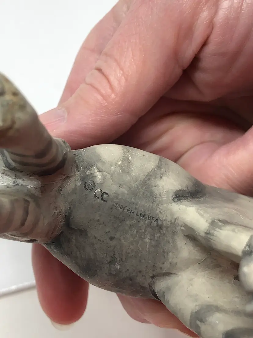 This guy has loads of personality! 5 1/2" long and 6 1/2" to the tip of his tail. Marked EN Ltd. 2006 BFA. Good preowned condition.