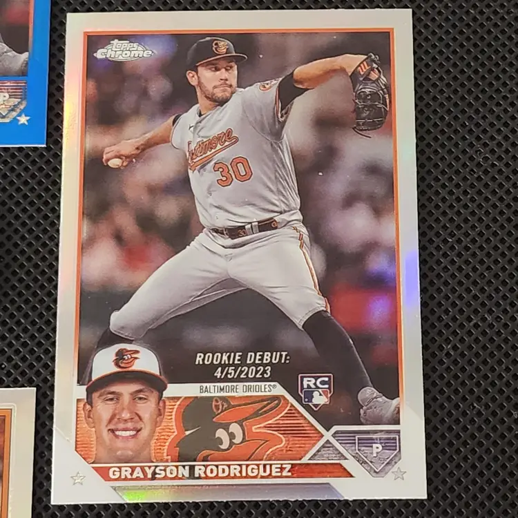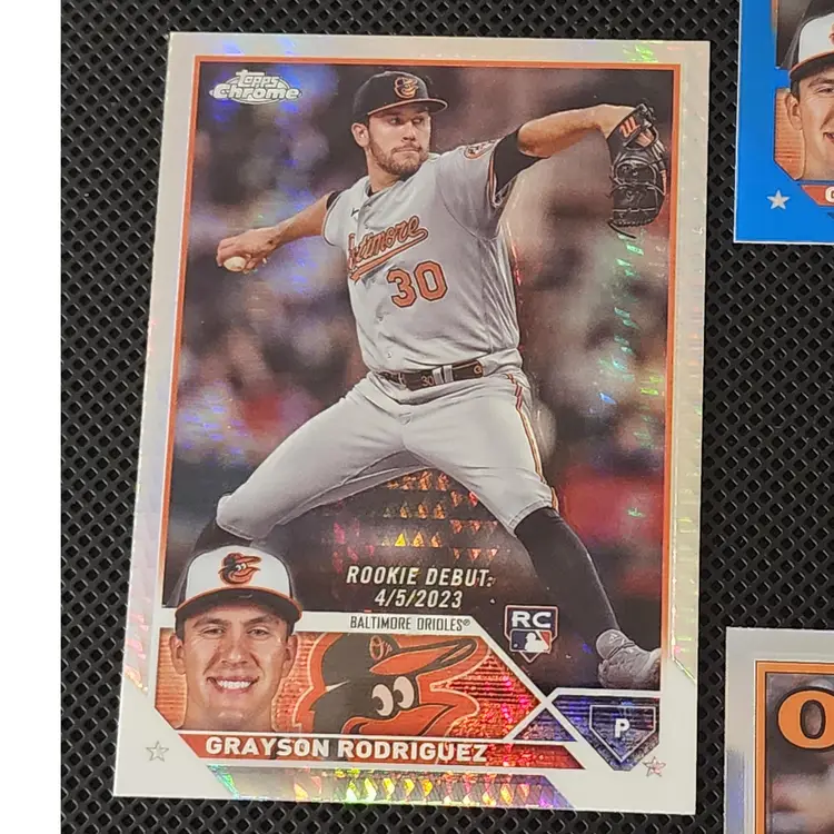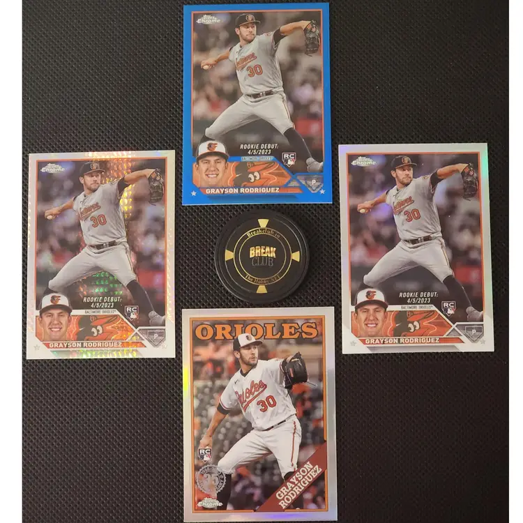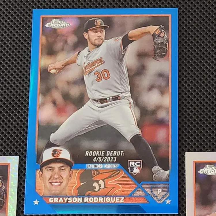 Four 2023 Topps Chrome Update cards. 3 - #USC16 in Refractor, Prizm, and Blue (numbered 80/150) and 1 - 88CU-10 Refractor. These cards ship BMWT.