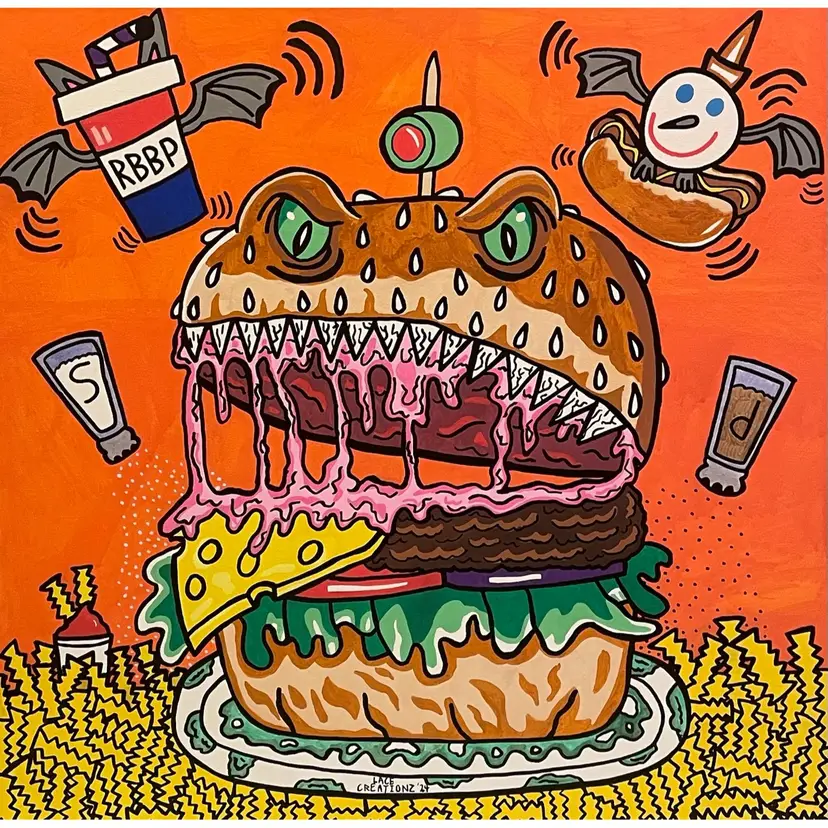 24x24 inch canvas. Acrylic painting. For lovers of burgers!