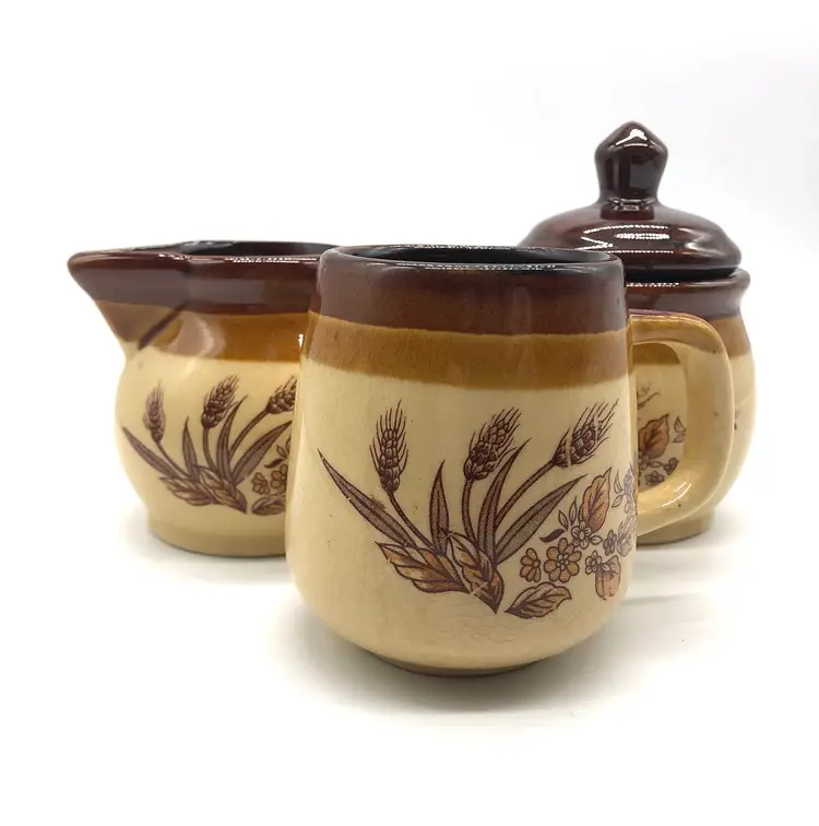 Step back in time with this charming vintage Woolworth's set, featuring a creamer, sugar bowl, and coffee cup. This collectible piece is perfect for adding a touch of nostalgia to your kitchen or dining room.