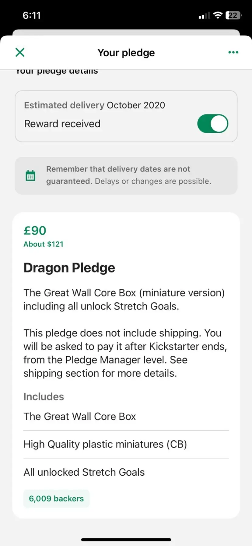 Dragon pledge + black powder. Core game box + Kickstarter goals box open but not played. Includes black powder. Asking $130 but would take less if you are in California Bay Area. I expect shipping 3 boxes to be kind of high.