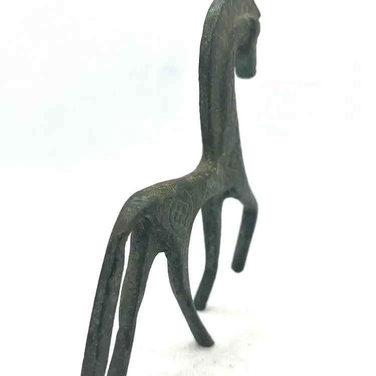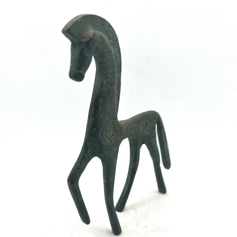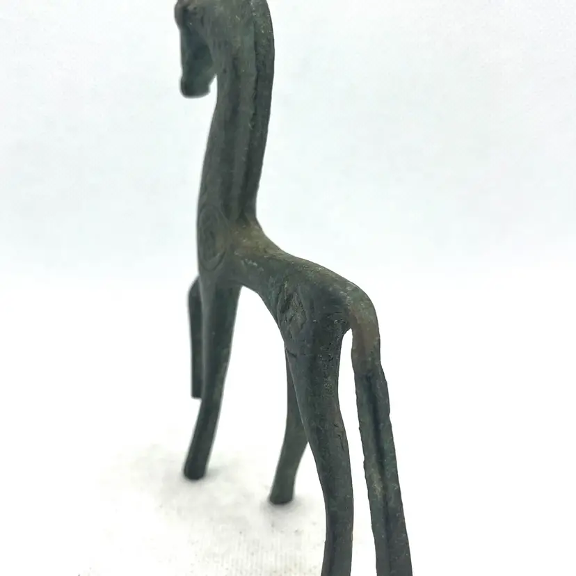This item is a bronze statuette inspired by ancient Greek Geometric period art, specifically resembling horses dedicated at sanctuaries around 800-700 BC.