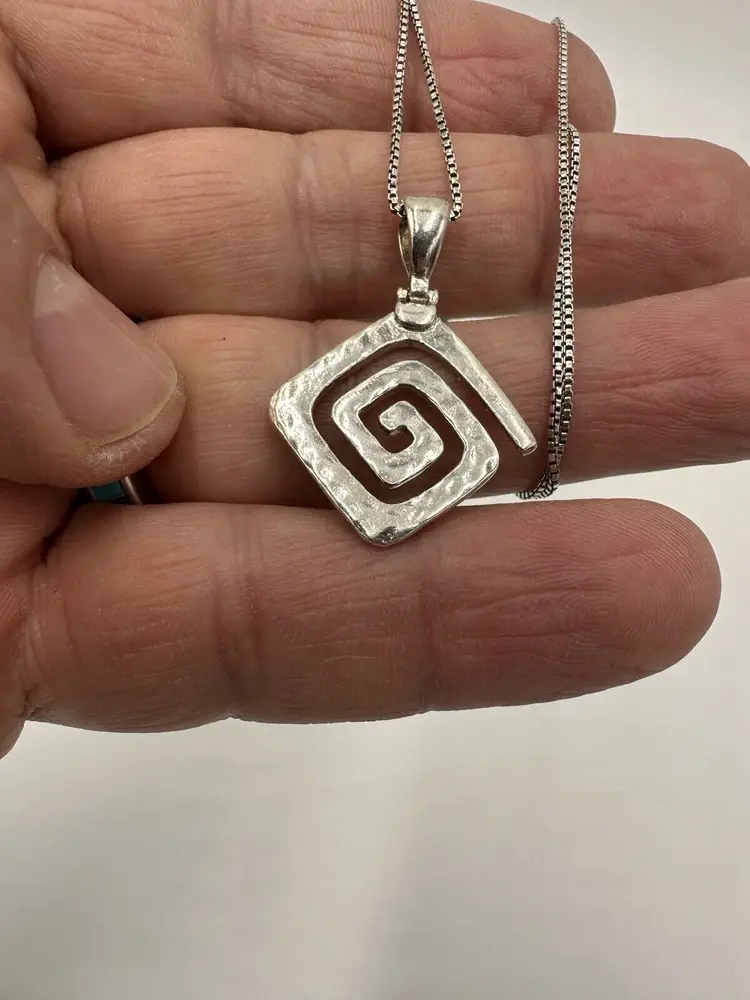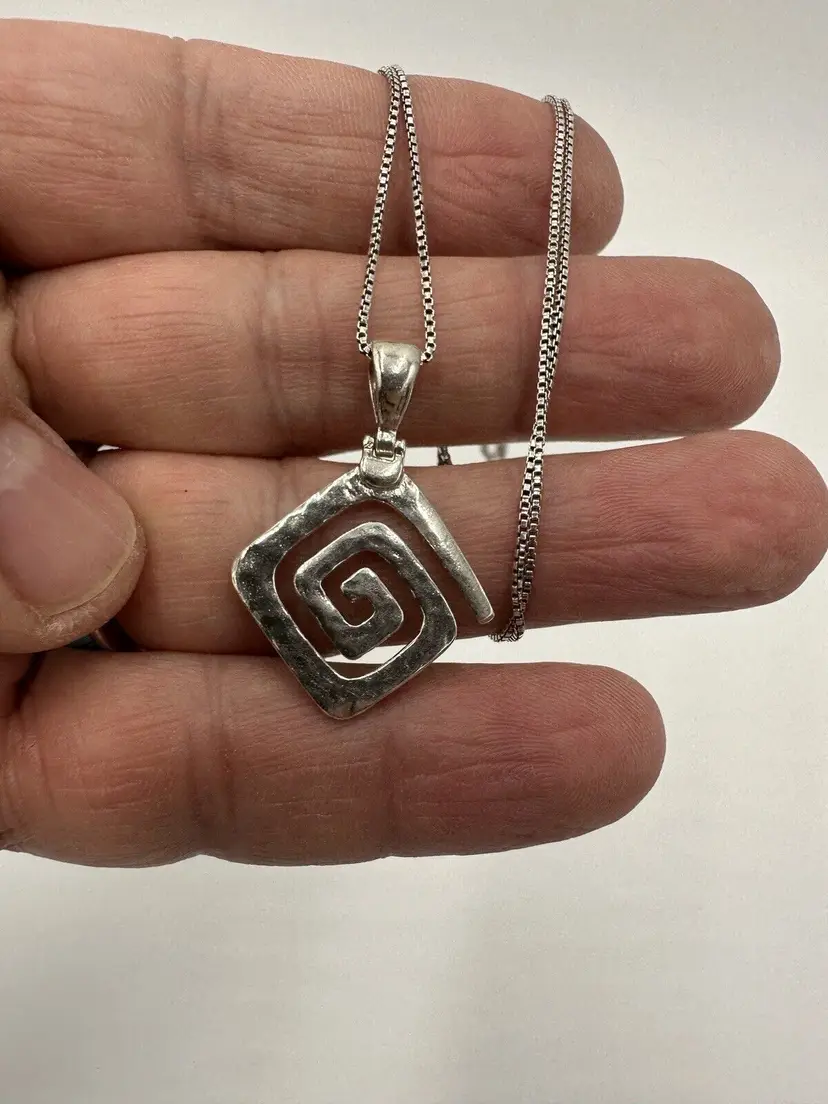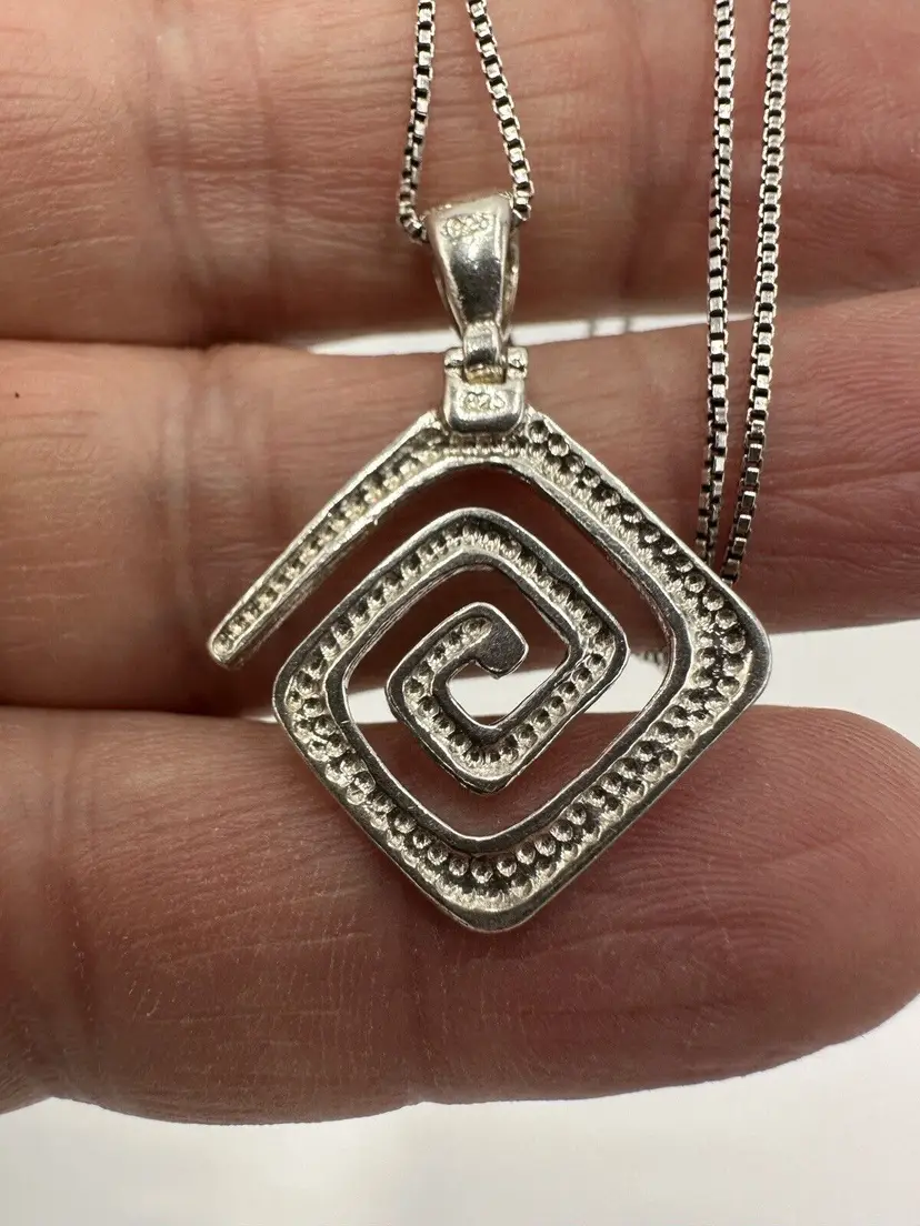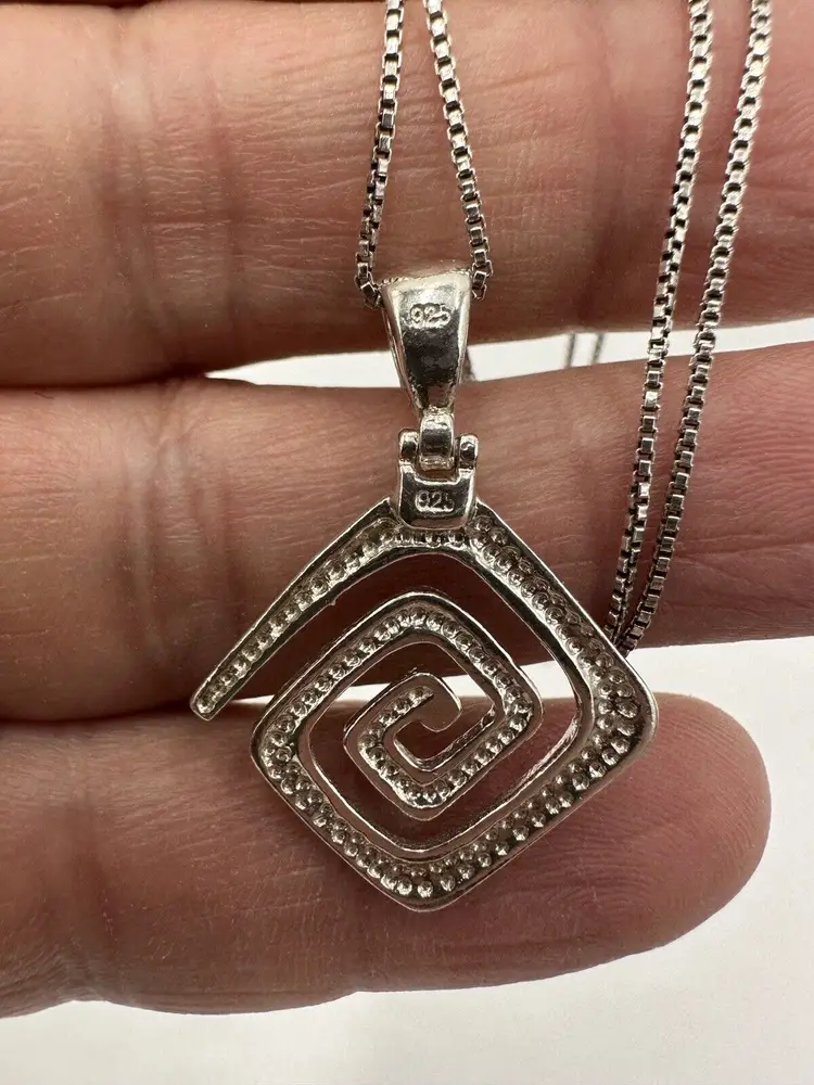 Pendant Shape: Square Number of Diamonds: -- Antique: No Main Stone Color: -- Metal: Sterling Silver Secondary Stone: No Stone Necklace Length: 19 in Vintage: No Main Stone: 925 Personalize: No Main Stone Treatment: -- Main Stone Shape: -- Pendant/Locket Type: -- Base Metal: Sterling Silver Style: Pendant Number of Gemstones: -- Handmade: Yes Chain Type: -- Main Stone Creation: -- Seller Warranty: Yes Signed: Yes Cut Grade: -- Color: Silver Sizable: No Material: Metal Total Carat Weight: -- Certification: -- Modified Item: No Diamond Clarity Grade: -- Setting Style: -- Brand: Designer Sterling Silver Type: Pendant Metal Purity: 925 Length: 1.92 inches Customized: No Colored Diamond Intensity: -- Diamond Color Grade: -- Theme: Signs & Symbols Country/Region of Manufacture: Greece Country of Origin: Greece
