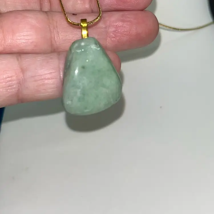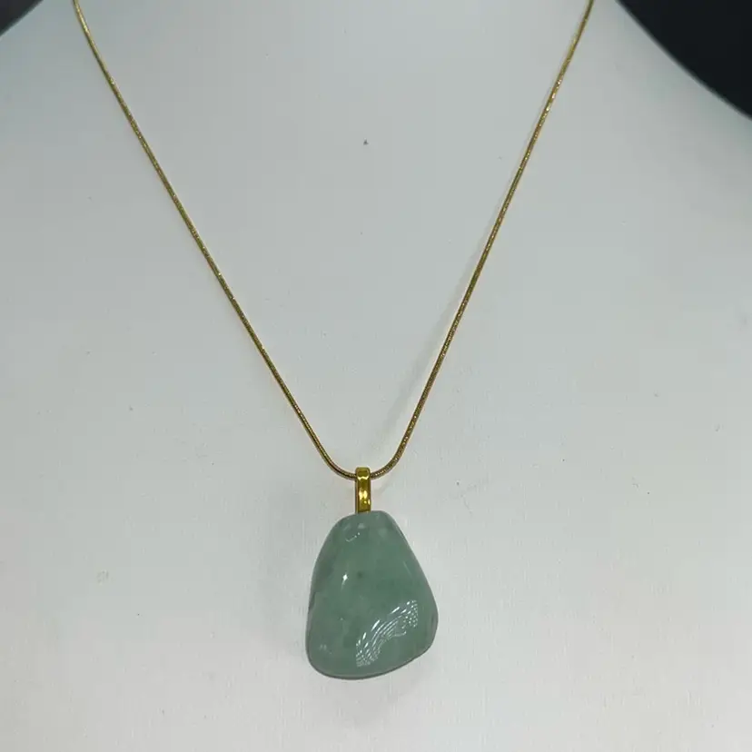 Green Adventurine Necklace Gold Tone Snake Chain, Lobster Clasp 18” Long