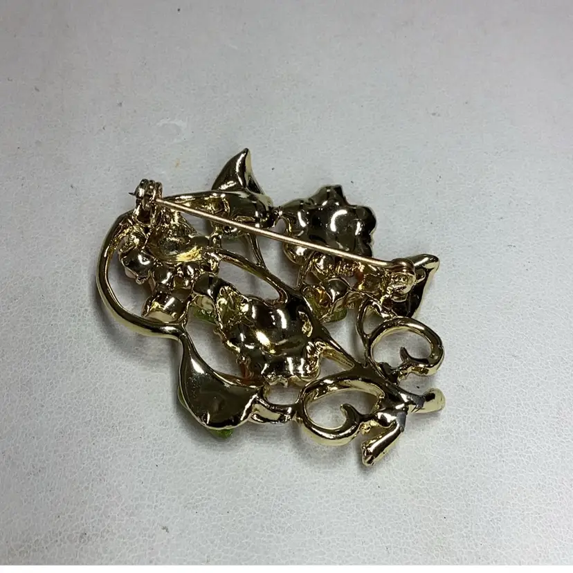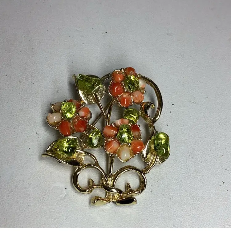 Green & Orange Stone Brooch Goldtone 1 3/4” - Modern