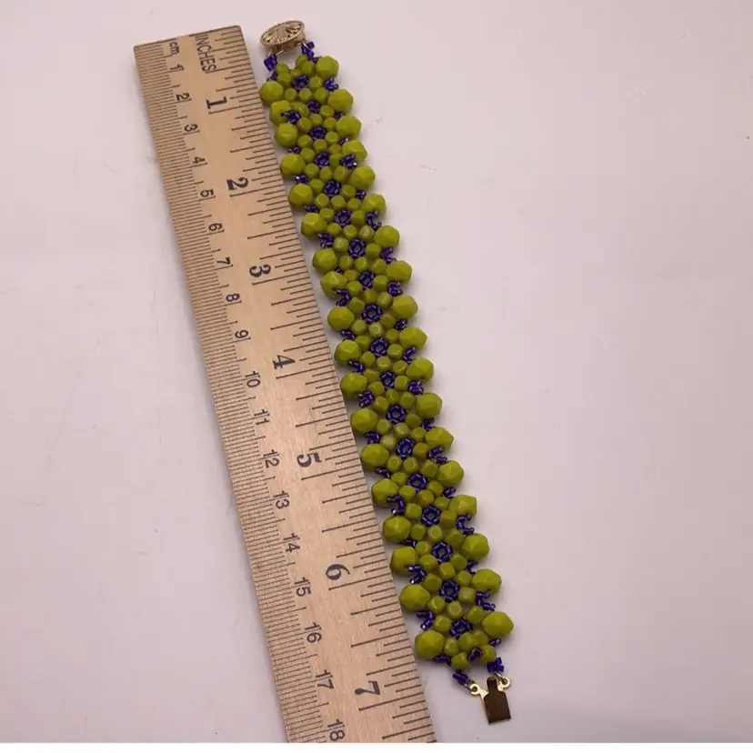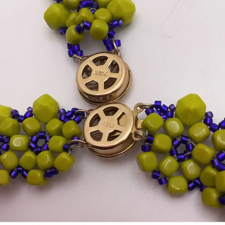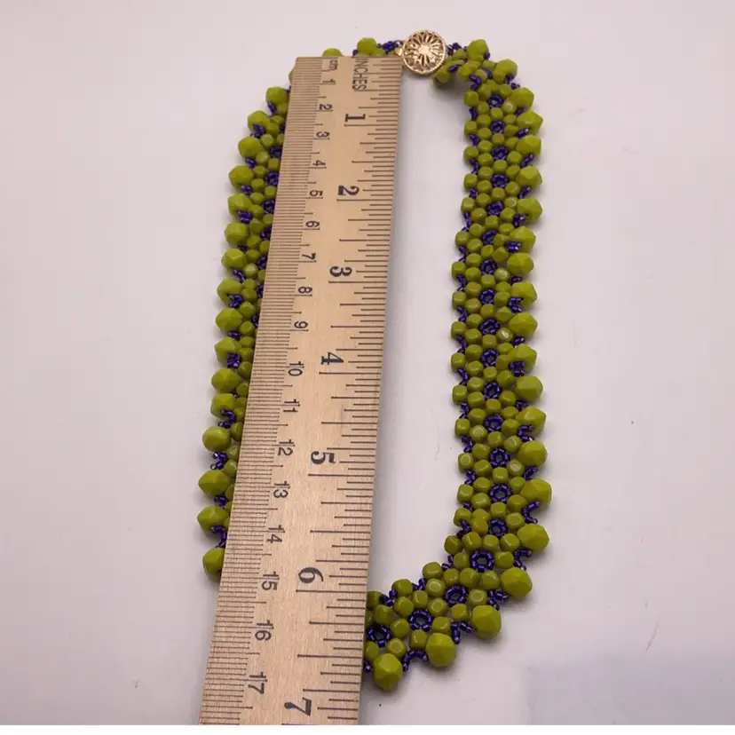 Necklace is 12”; bracelet is 7”. From an artist's Estate in Southern California. In addition to beadwork, she was a professional porcelain painter.