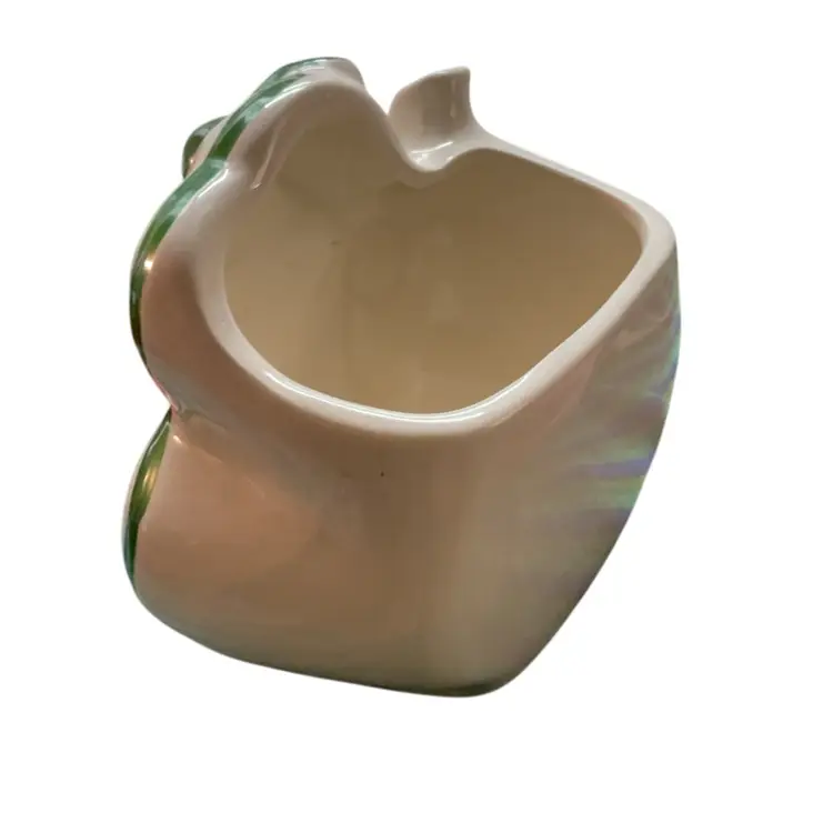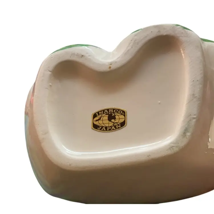 4 1/4 high 5 “ high 3 “ wide Made in Japan by INARCO Simple clover vase with Kelly Green Cold Paint In good condition no chips cracks a tiny bit of missing cold paint
