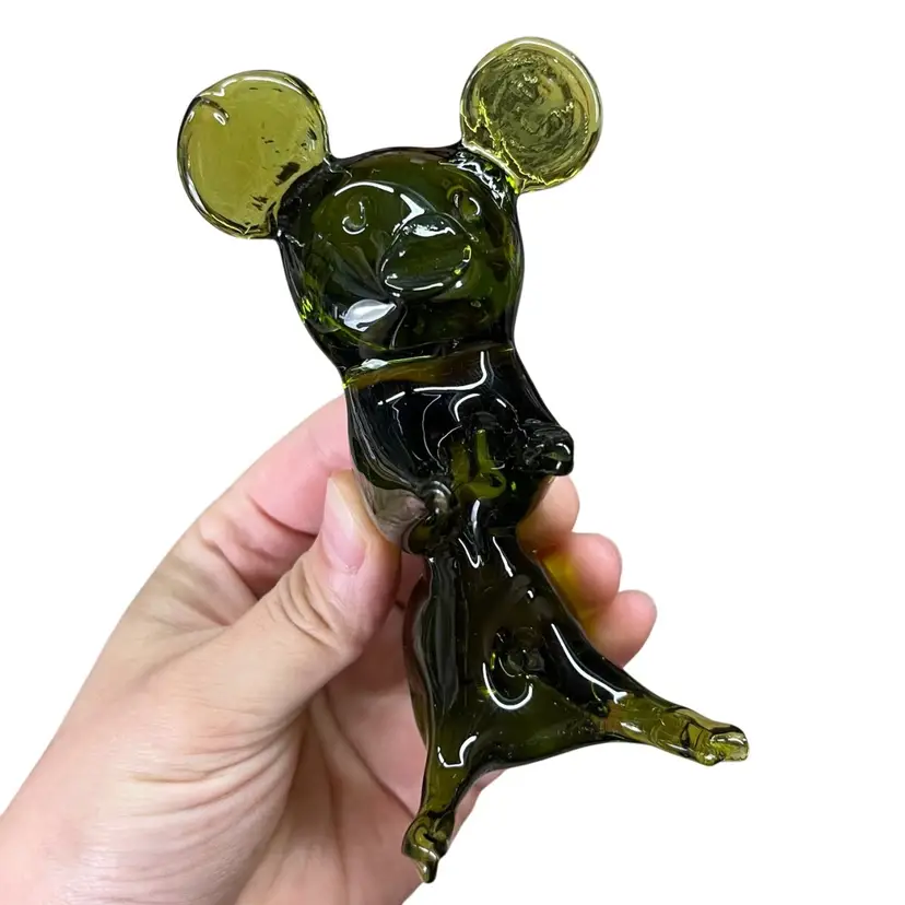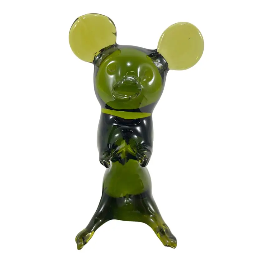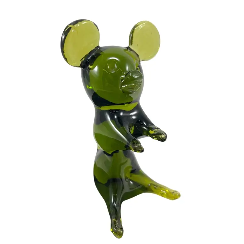 Approximately 4.25” x 2.25” x 2”. No chips or cracks. Scuffed spot on backside (see last photo). Is it a koala? Is it a bear? Is it a mouse without a tail? You decide!