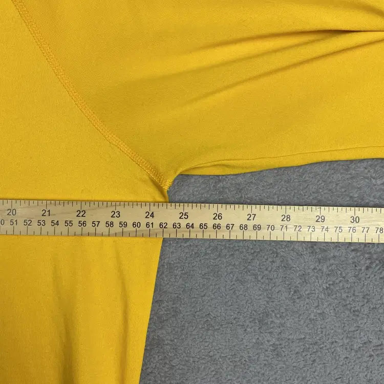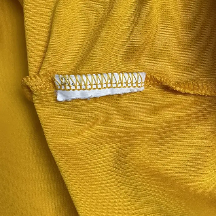 Material: Lightweight smooth performance knit fabric; inner content tag is partially cut and exact fiber blend is not fully readable.