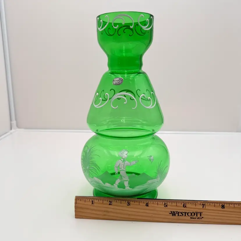 As shown 10.5 inches tall by 5 inches wide No chips or cracks