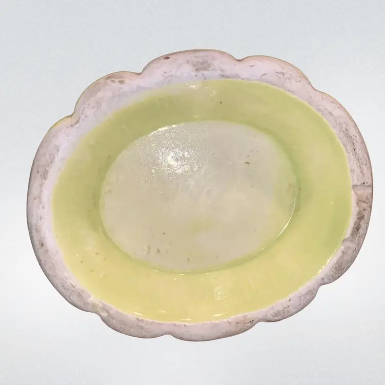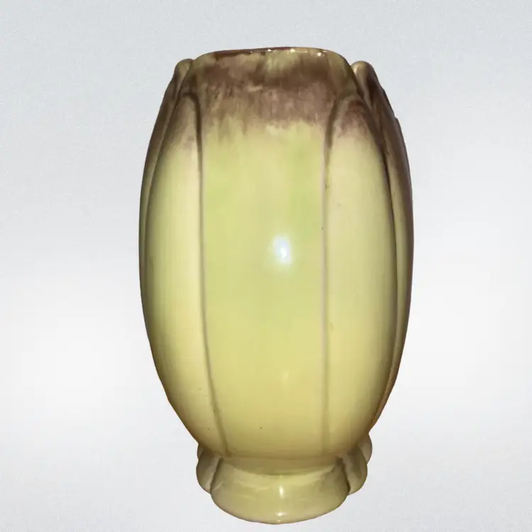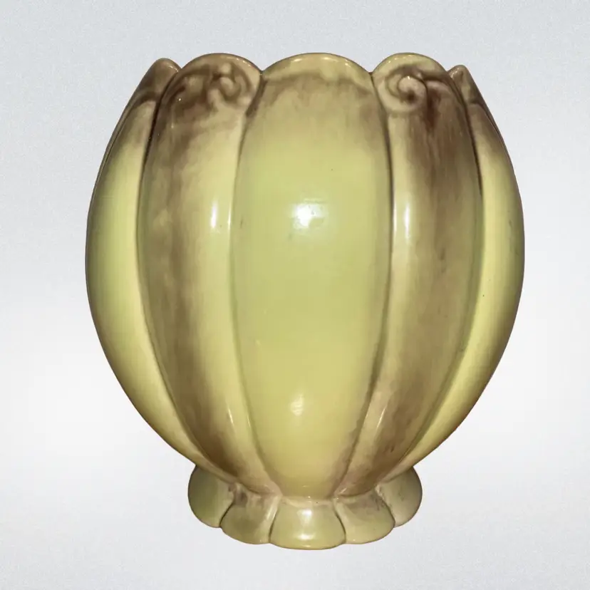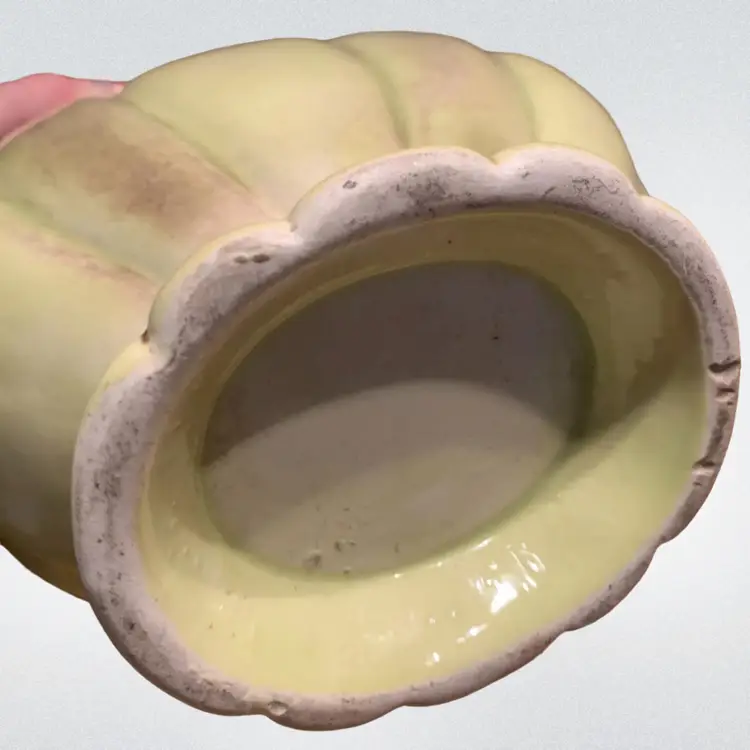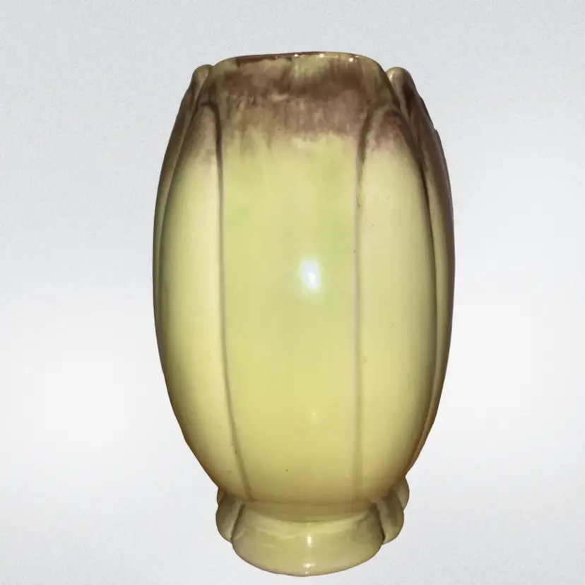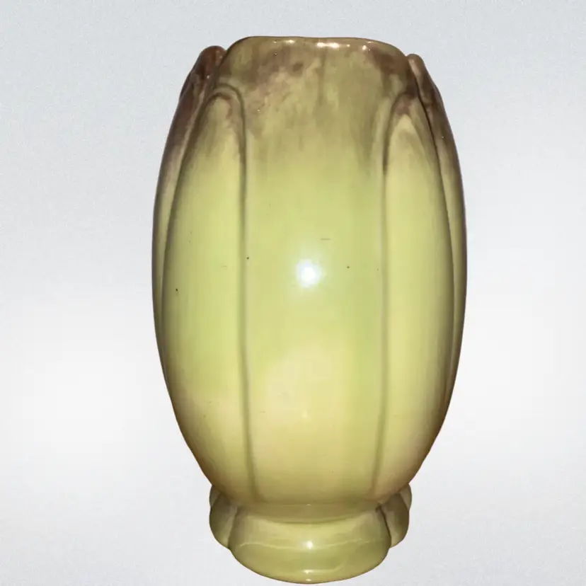 Vintage Green & Brown 7” Vase / Planter Ceramic. 7” tall x 6” x 3.5”-3 3/4” A couple small knicks out of bottom rim ~ see last picture