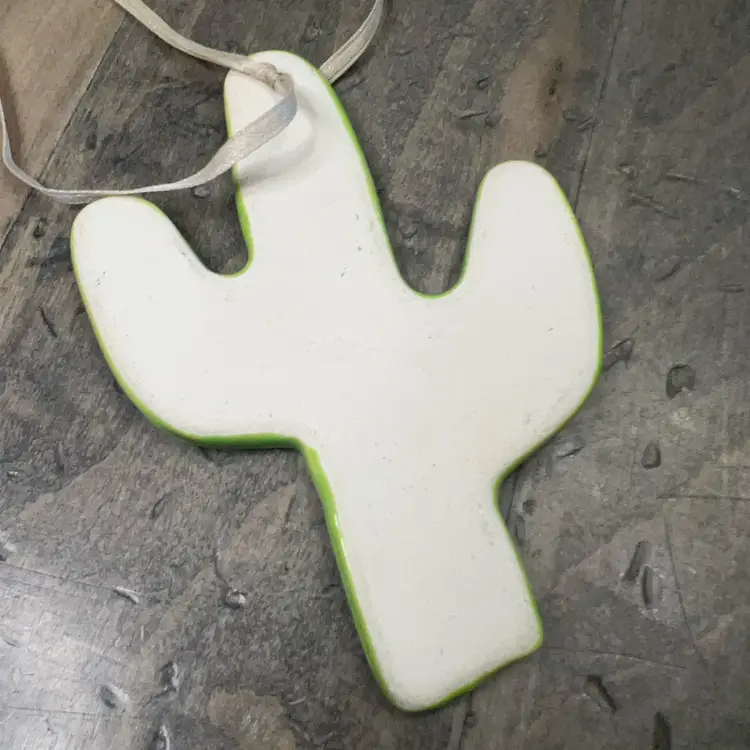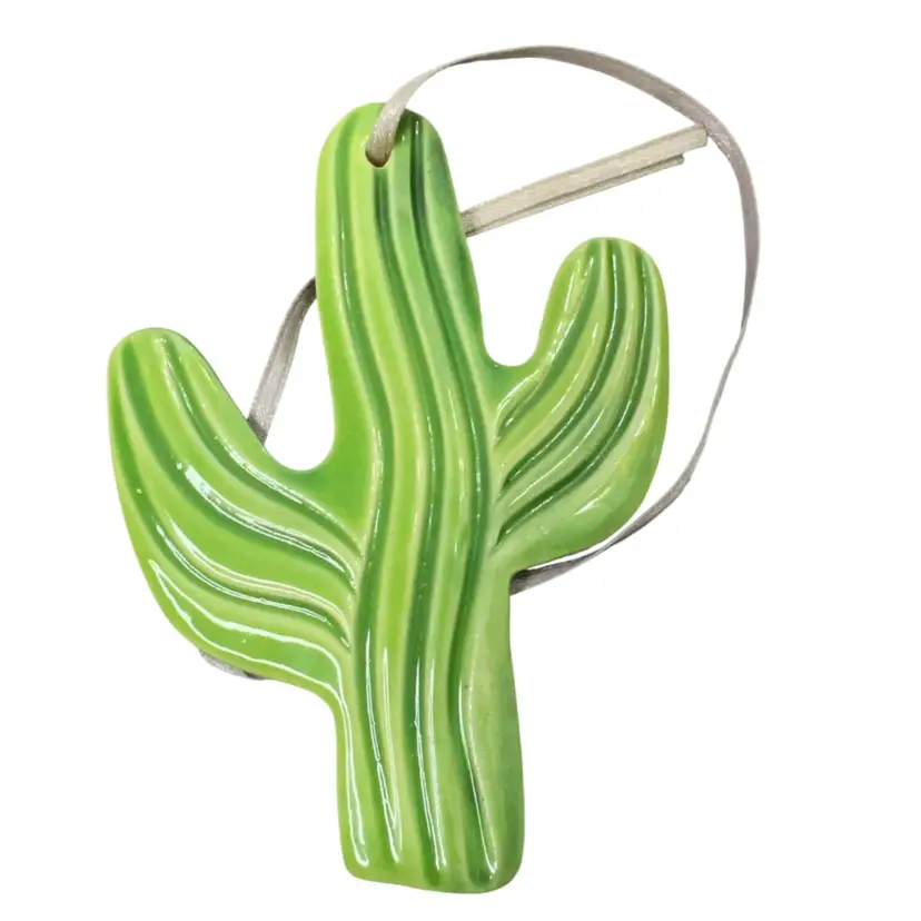 Green Ceramic Cactus Hanging Decoration 4” Tall Adorable Southwestern Decor