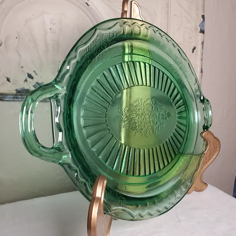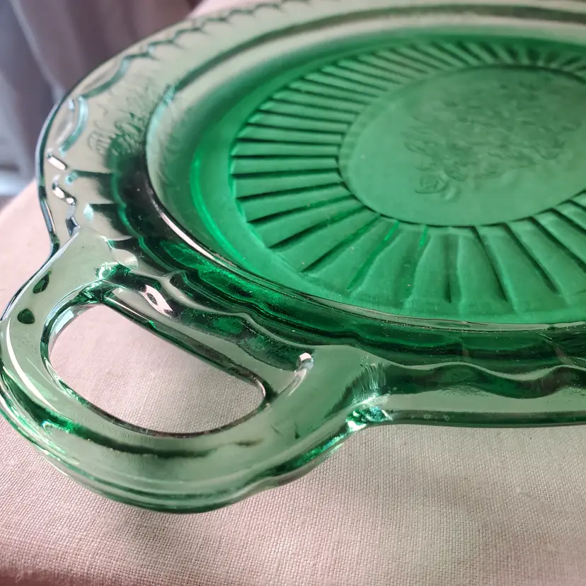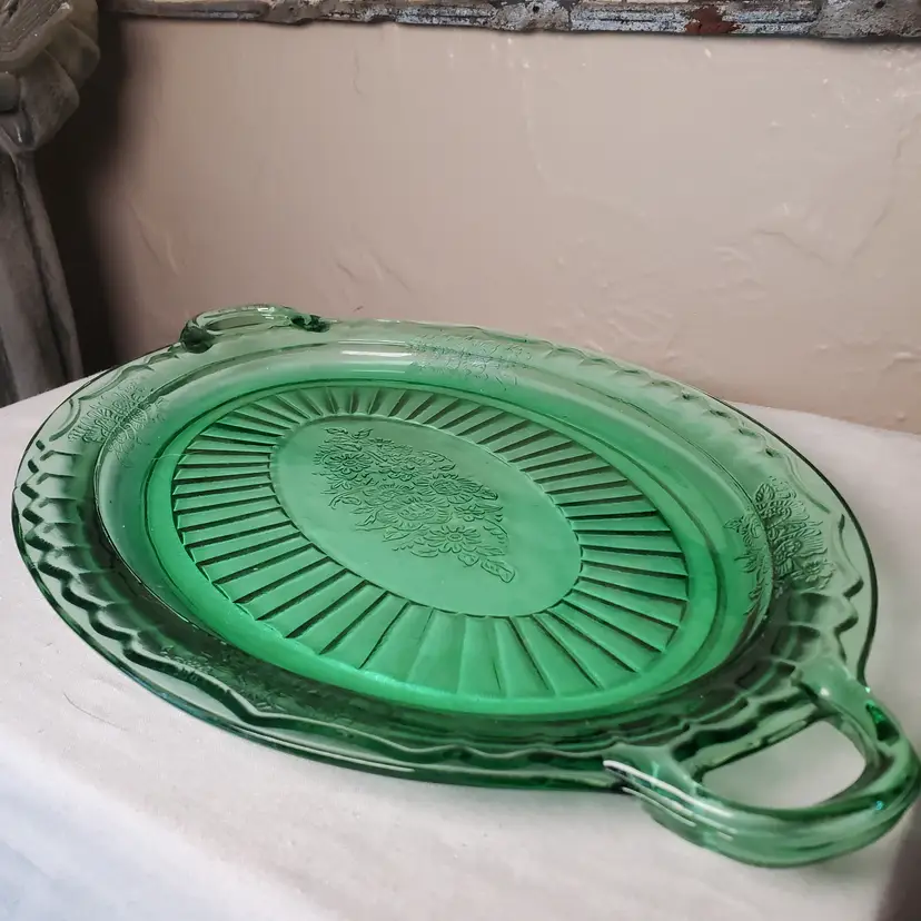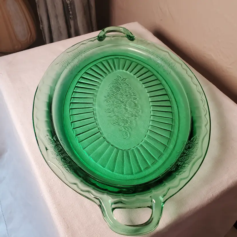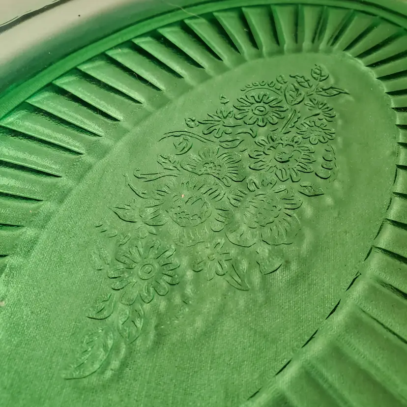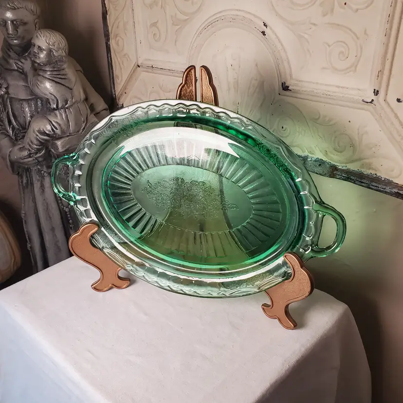 Stunning small green glass platter. 8 7/8" x 13 7/8"