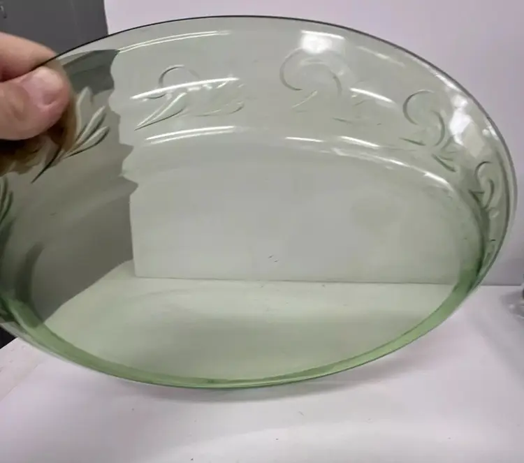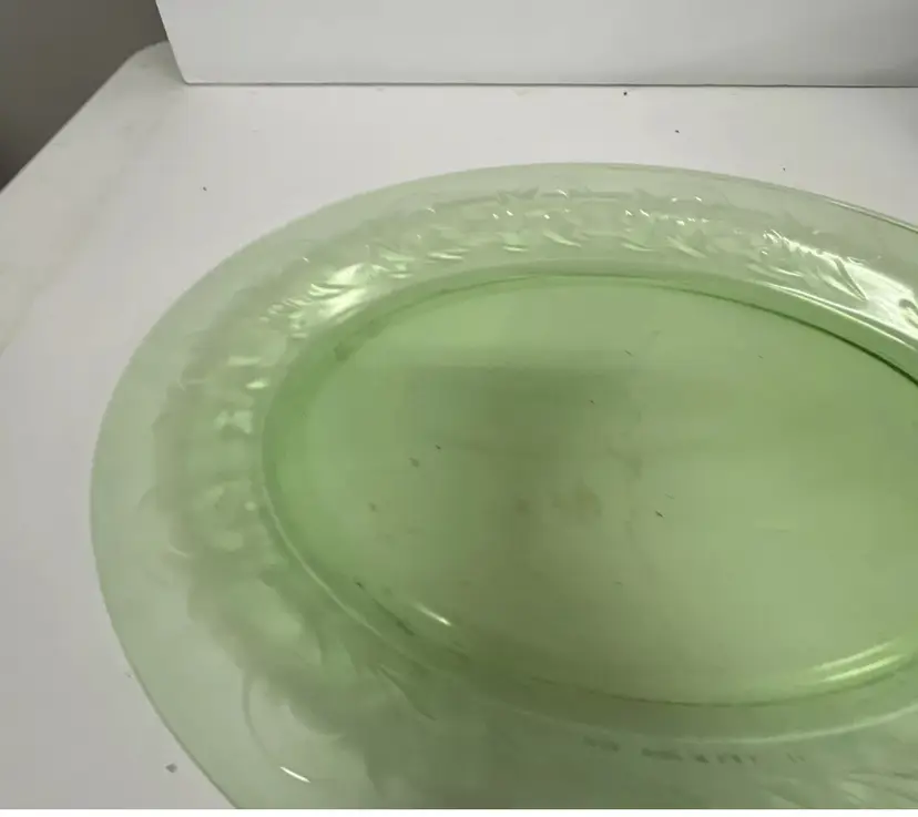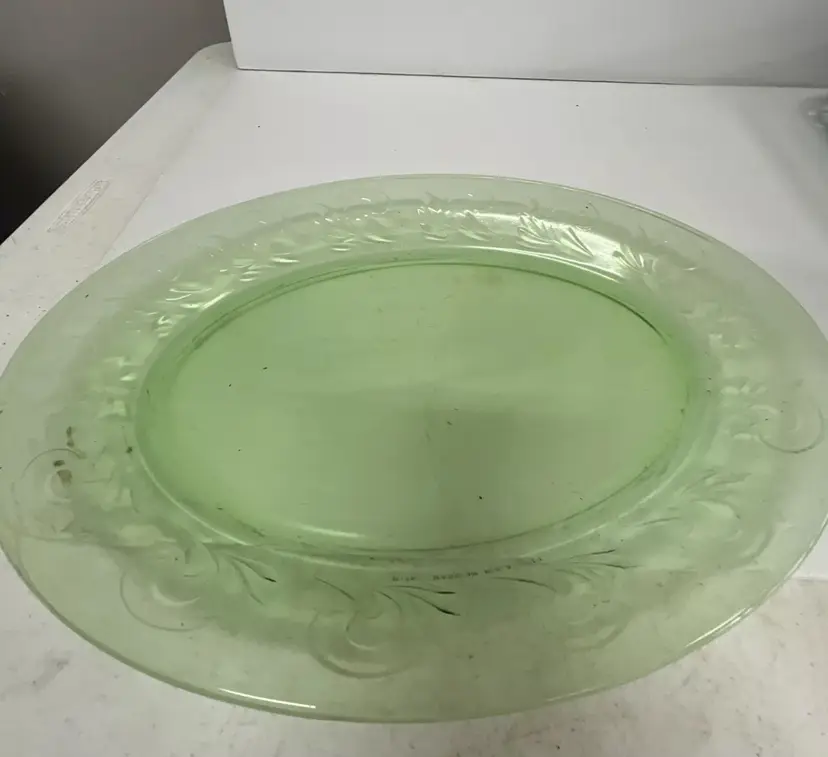 Green Glass Decorative Serving Platter Vintage H16" Made in USA 11