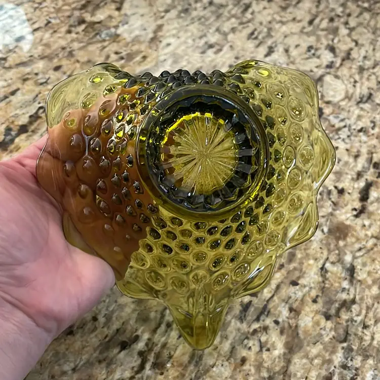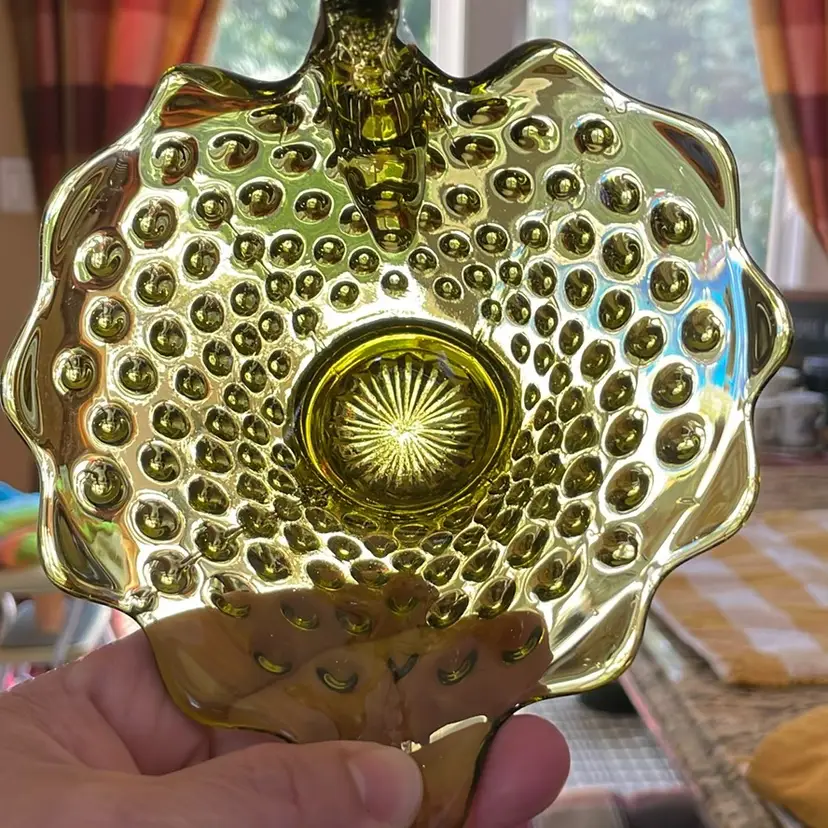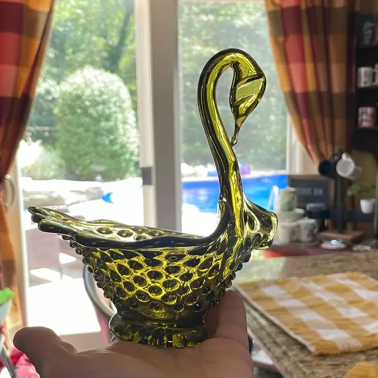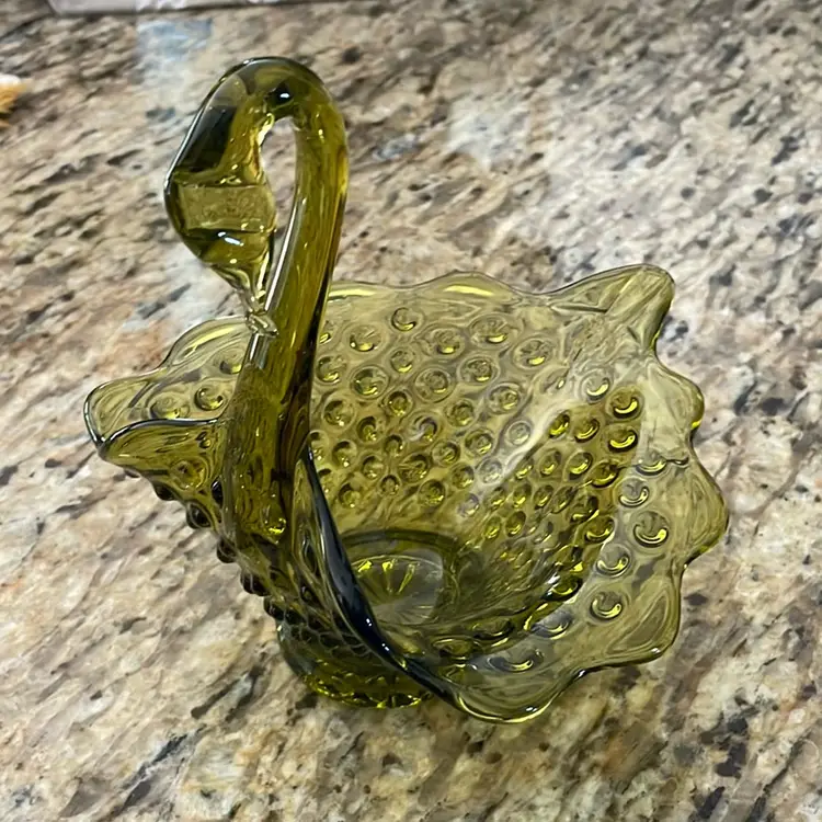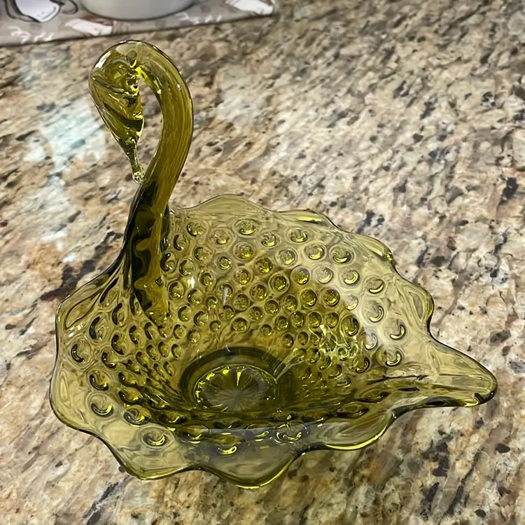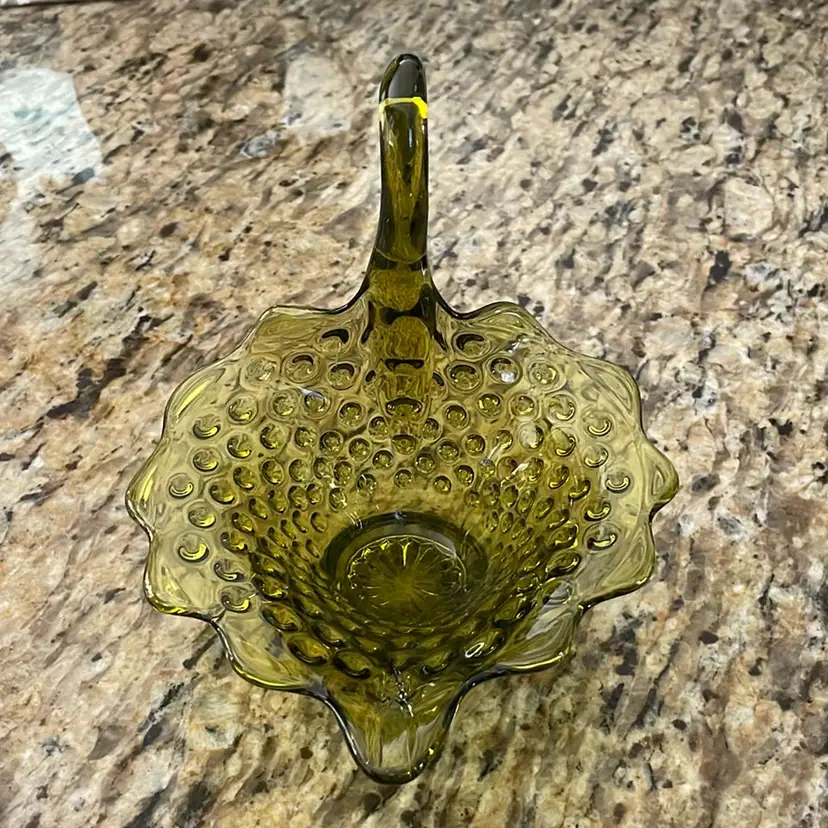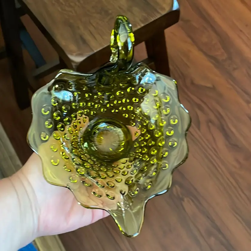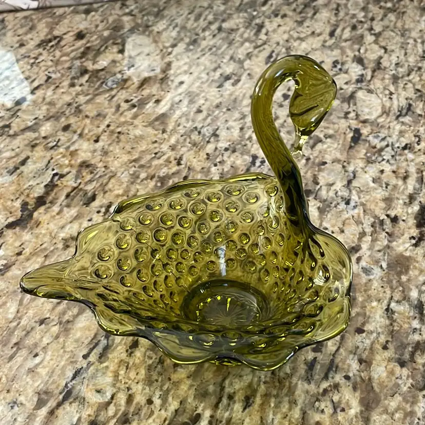 Vintage Green Hobnail Swan Glass Bowl Candy Dish Kanawha Trinket
