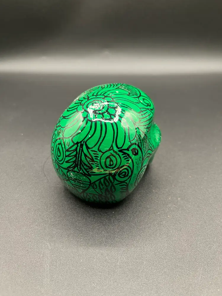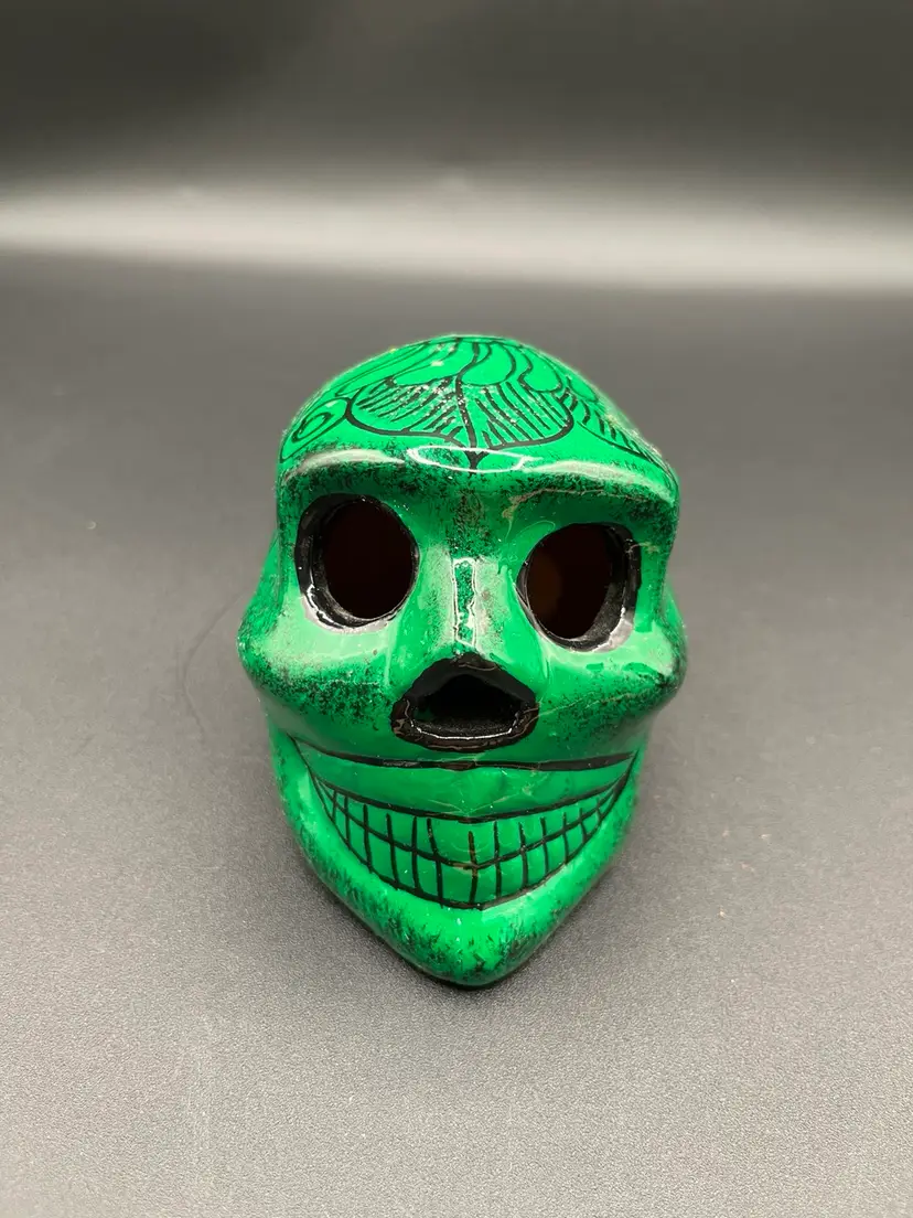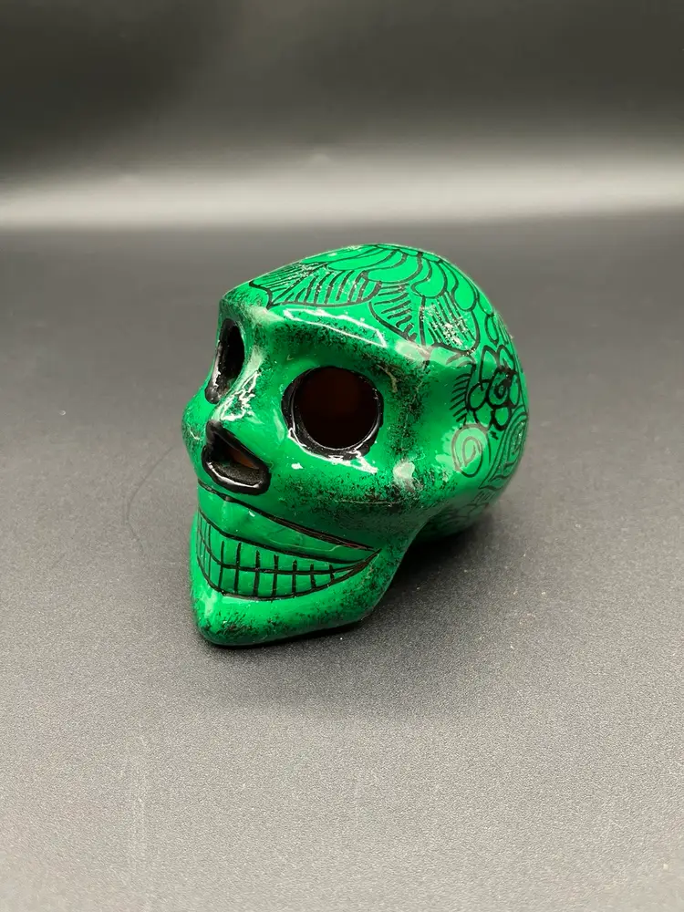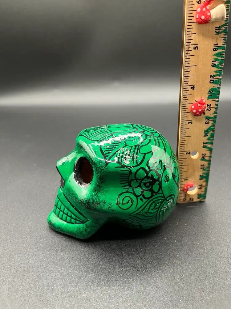 Día de Los Muertos Green Mexican Redware Pottery Day Of the Dead Hand Painted Calavera Skull 4”💀