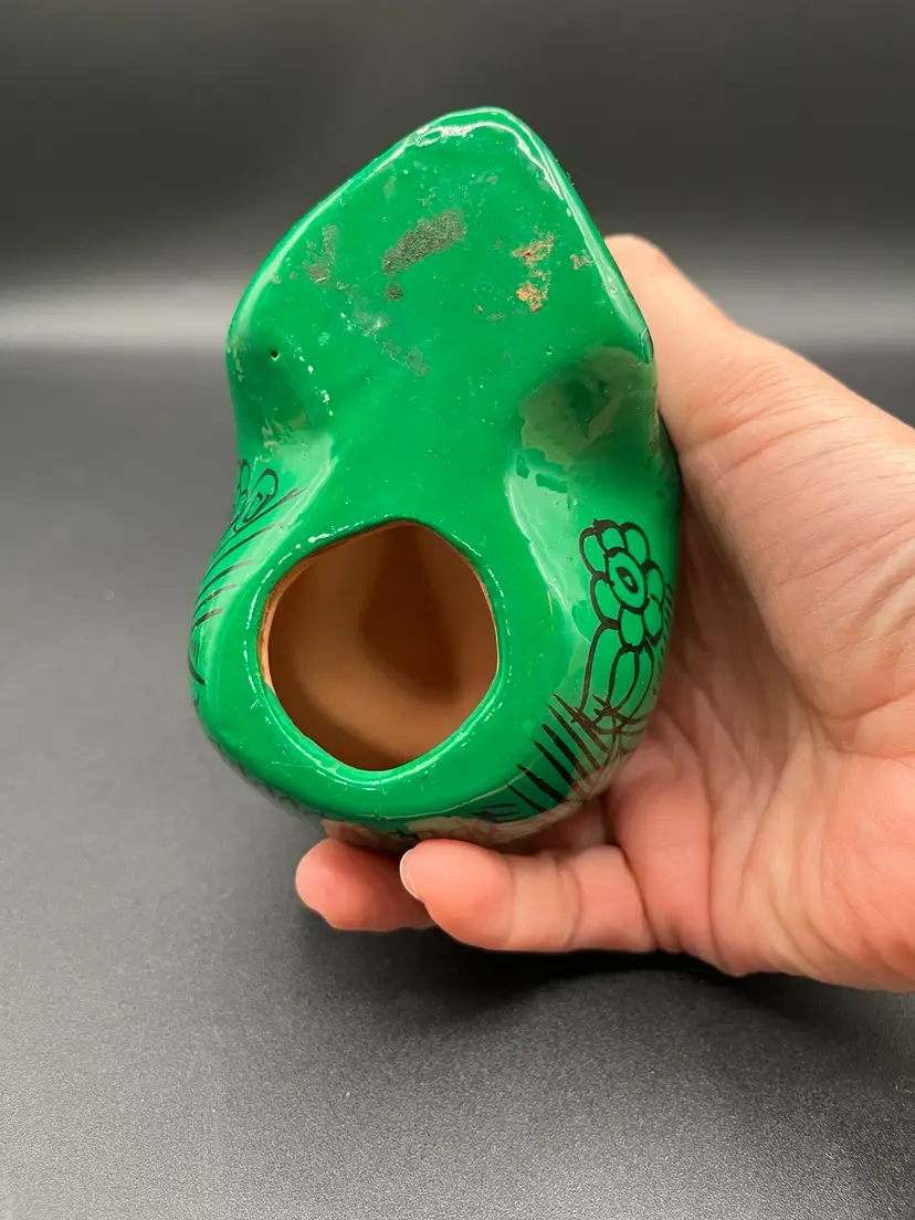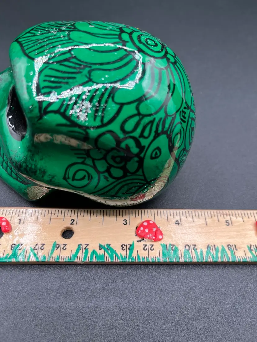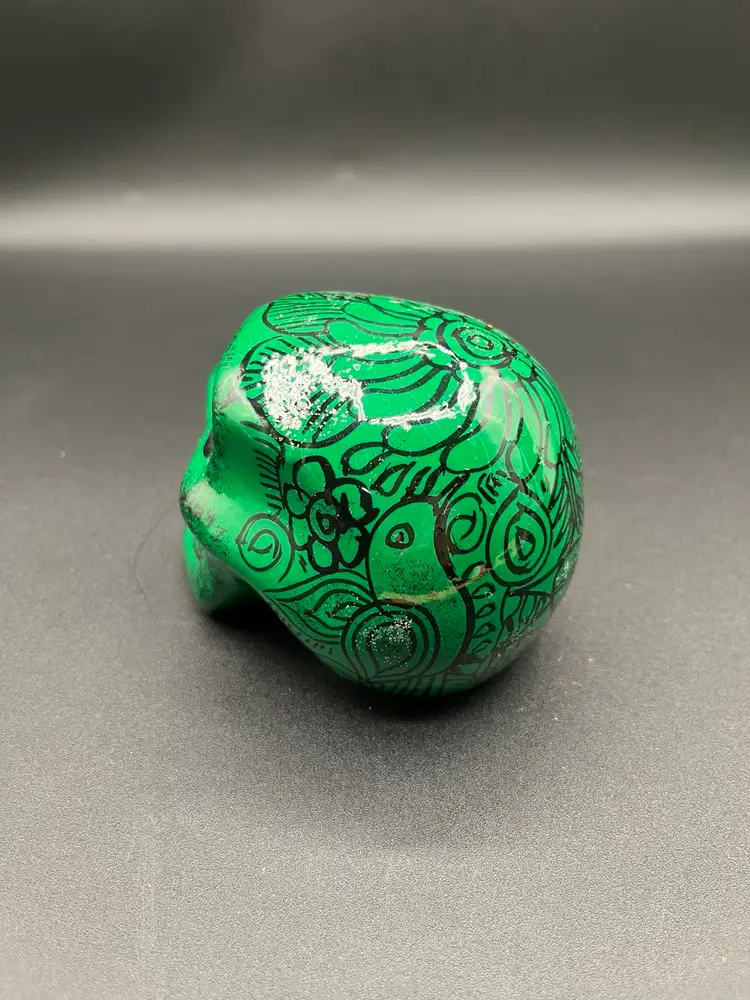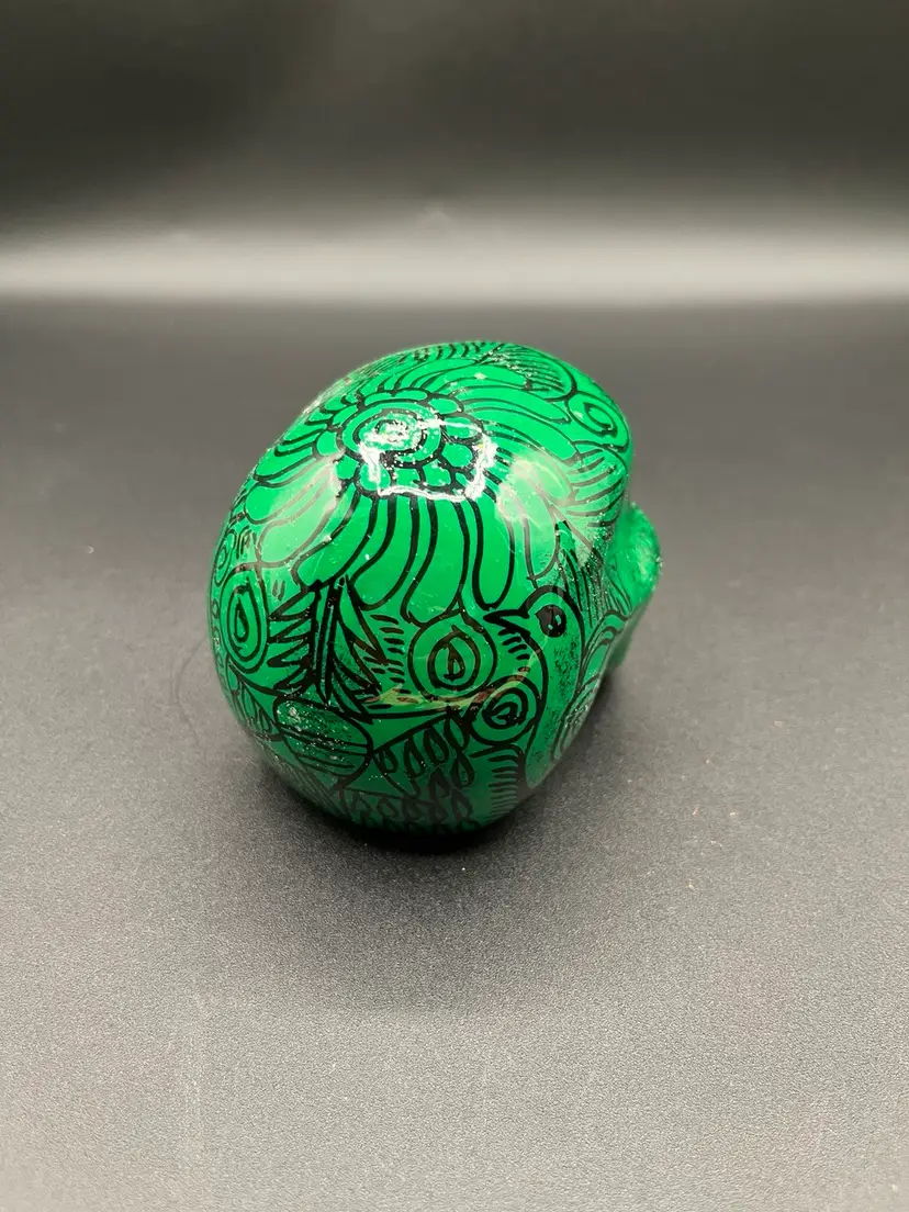 Día de Los Muertos Green Mexican Redware Pottery Day Of the Dead Hand Painted Calavera Skull 4”💀