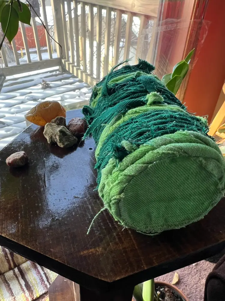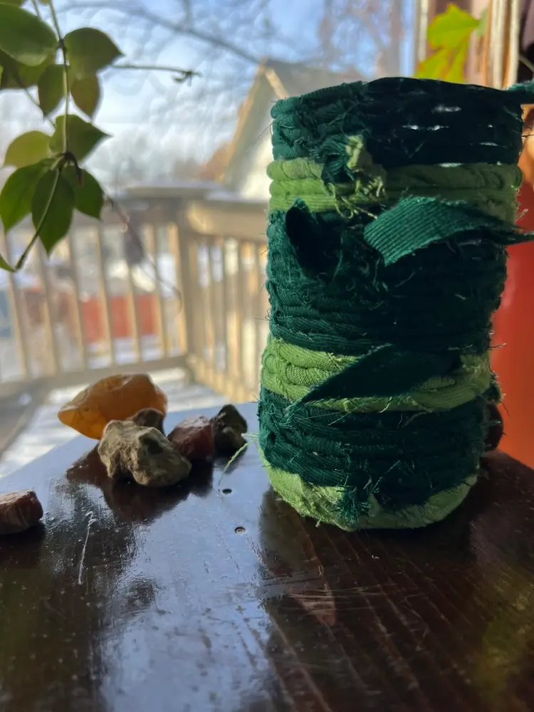 Cachepot hand crafted with vintage/upcycled fabric and upcycled plastic. 100% of the profits will go towards Minnesota mutual aid which will be donated to prismmpls.org Any overage on shipping cost will also be donated to mutual aid. Rocks not included π