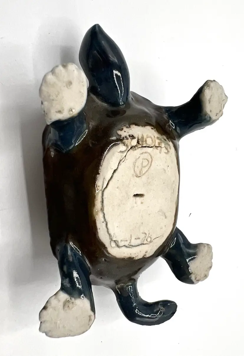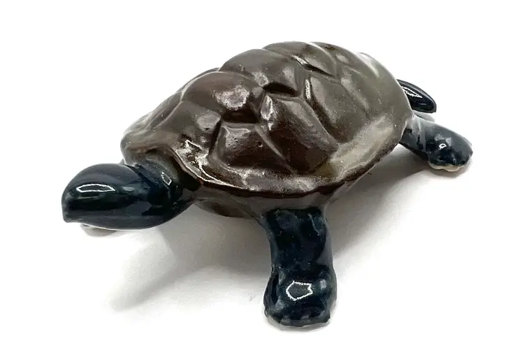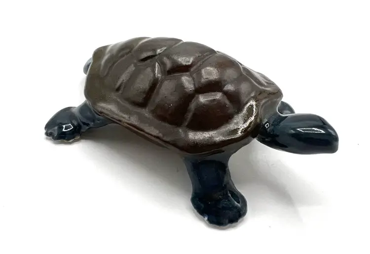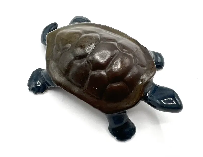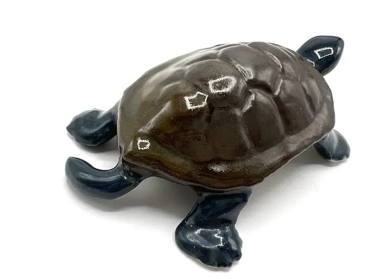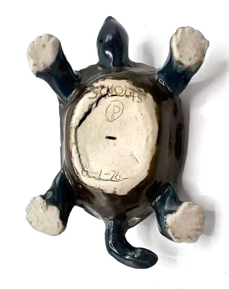 Amazing collectible painted ceramic turtle is a lovely turtle likeness. Signed on the bottom with SCHOLTS and 6/1/76. This handmade figurine would be perfect addition to your turtle collection. Also could be used outside but it seems too lovely for that. Hallmark: SCHOLTS - 6/1/76 Size: 3 1/2 inches long by 2 inches wide by 1/2 inches tall Condition: vintage very good - amazing considering the age
