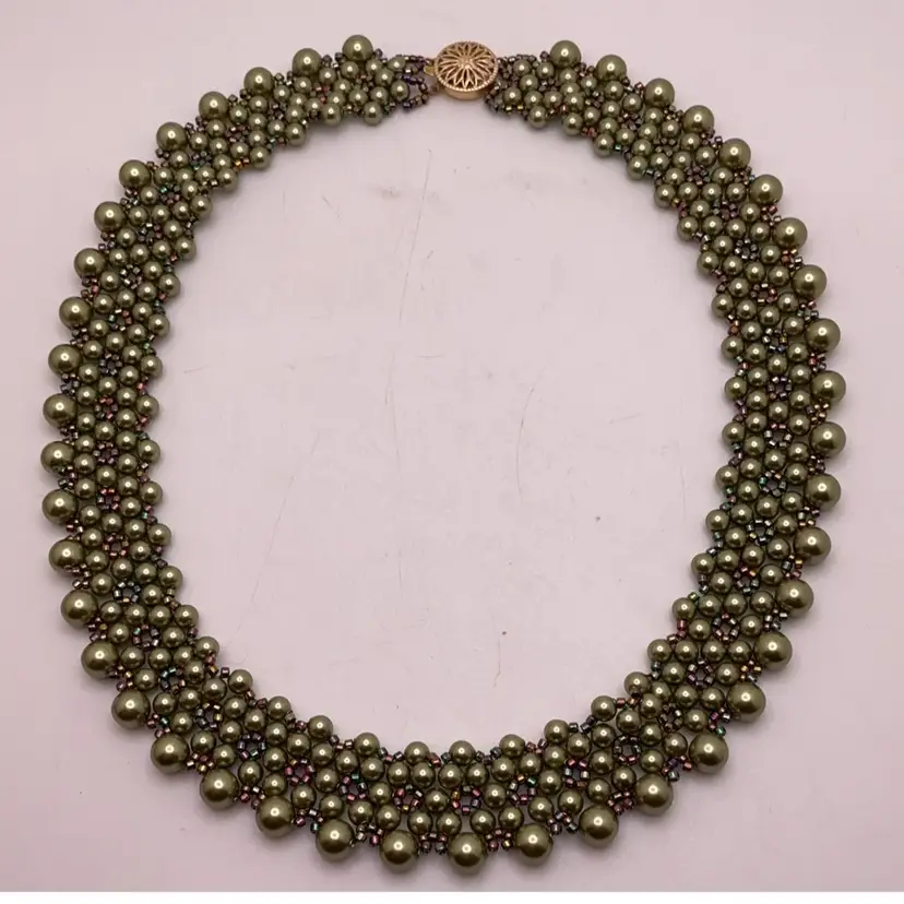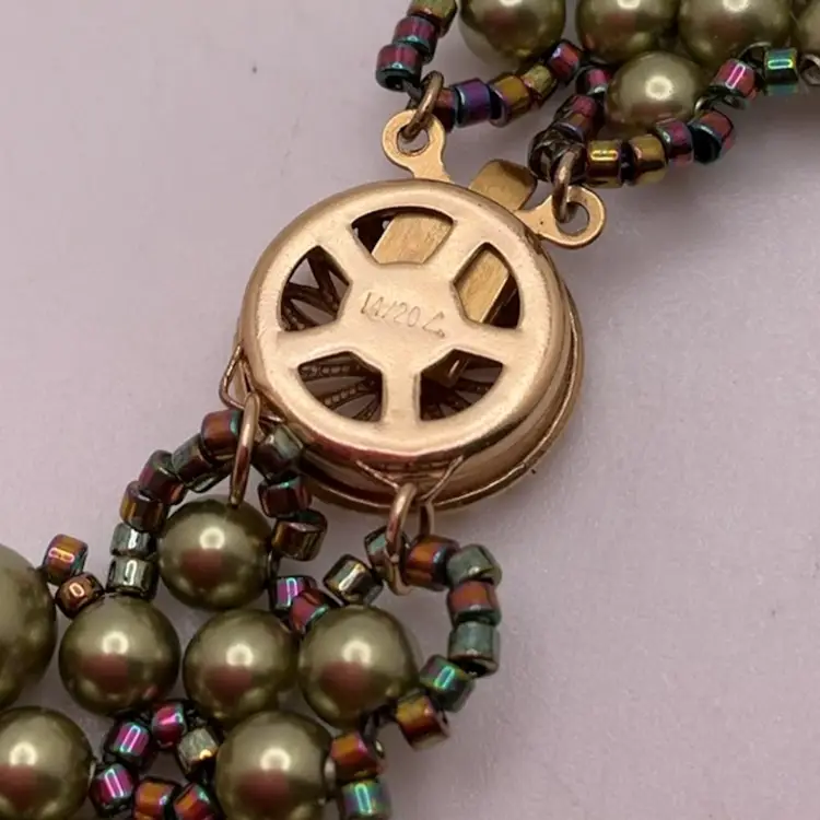 Clasp marked gold filled. From an artist's Estate in Southern California. In addition to beadwork, she was a professional porcelain painter.