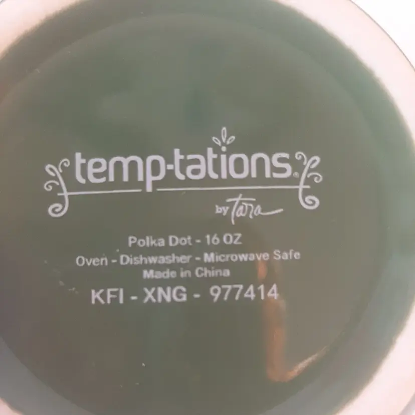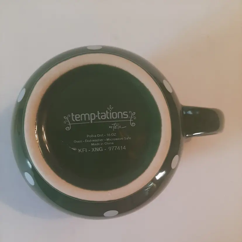 – Features: Decorated, Microwave Safe, Oven-Safe – Pattern: Polka Dot – Service For: 1 – Occasion: All Occasions, St. Patrick's Day, Summer, Spring – Material: Stoneware – Shape: Round – Brand: TEMPTATIONS – Style: Modern – Color: Green – Set Includes: Mug – Theme: Food/Kitchen, Food & Drink – Capacity: 16 fl oz – Type: Coffee Mug