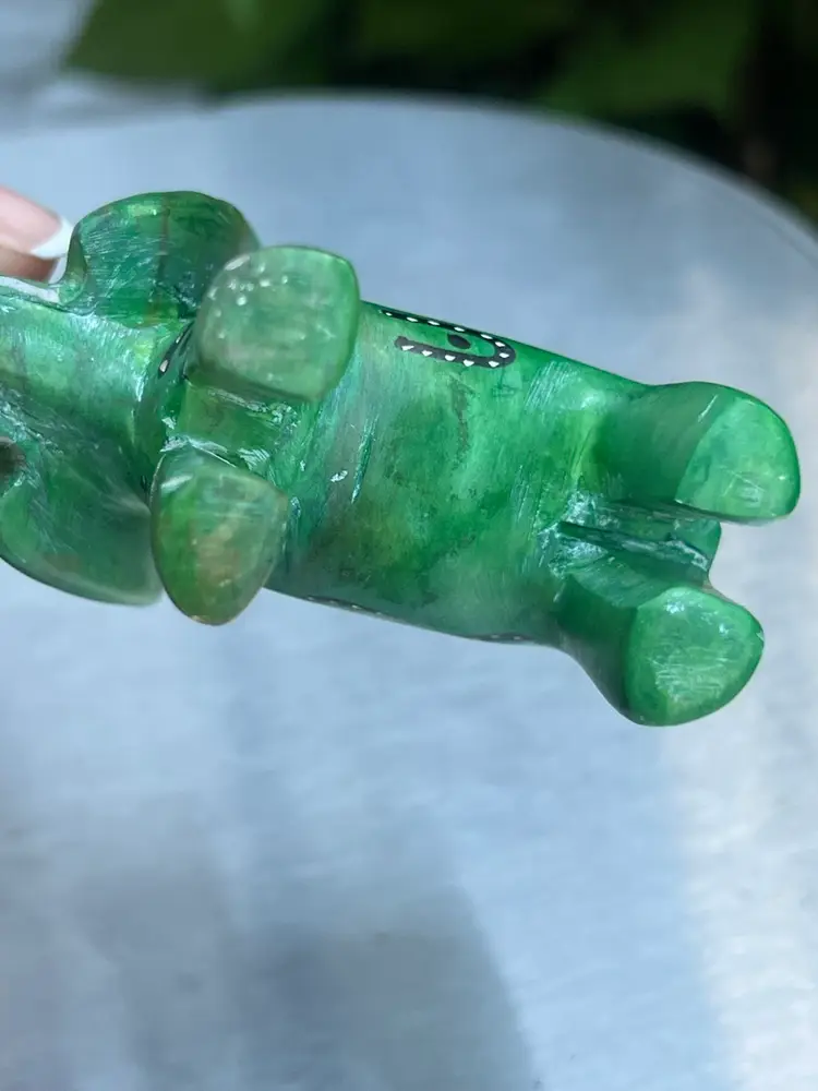 Good used condition. Light discoloration in some areas. All sides shown in pictures. Overall a very cute piece.