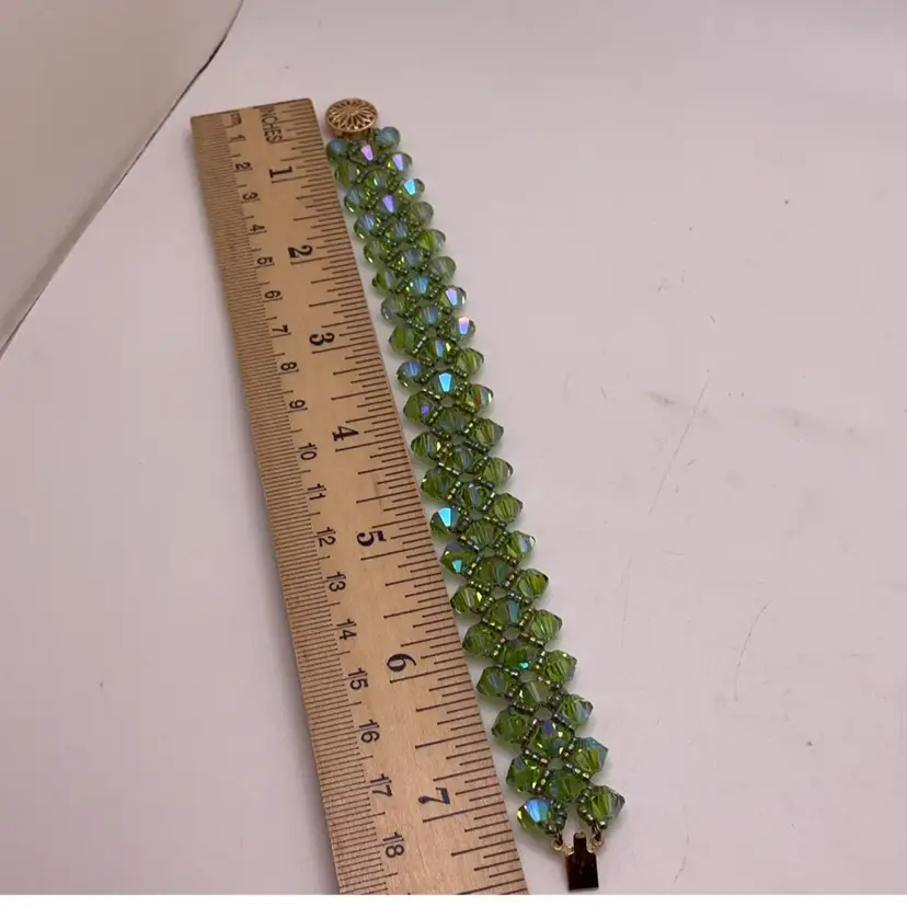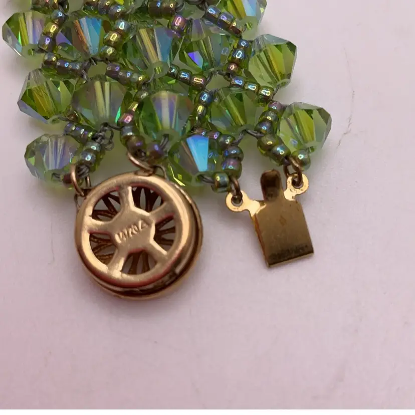 Green Swarovski Crystal Bracelet with Gold Filled Filagree Box Clasp Artisan Made 7.25”