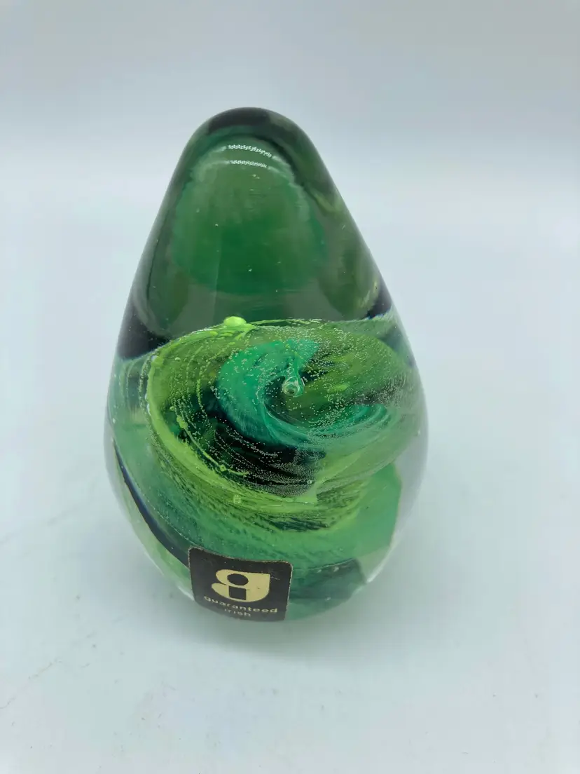 Green Swirl, Egg Shaped, Paperweight made in Ireland, Stickers