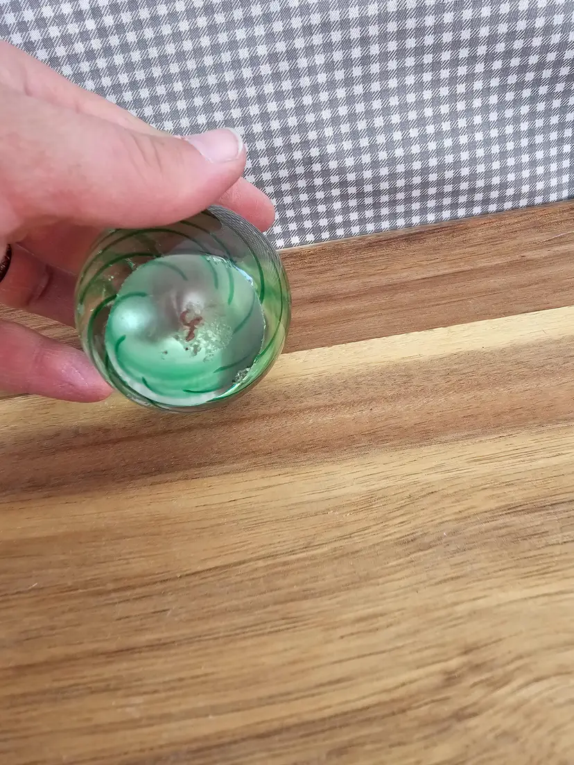 Elegant green swirl glass paperweight with a mesmerizing design. Perfect for adding a touch of sophistication to your desk or shelf. A great gift for collectors and art lovers.