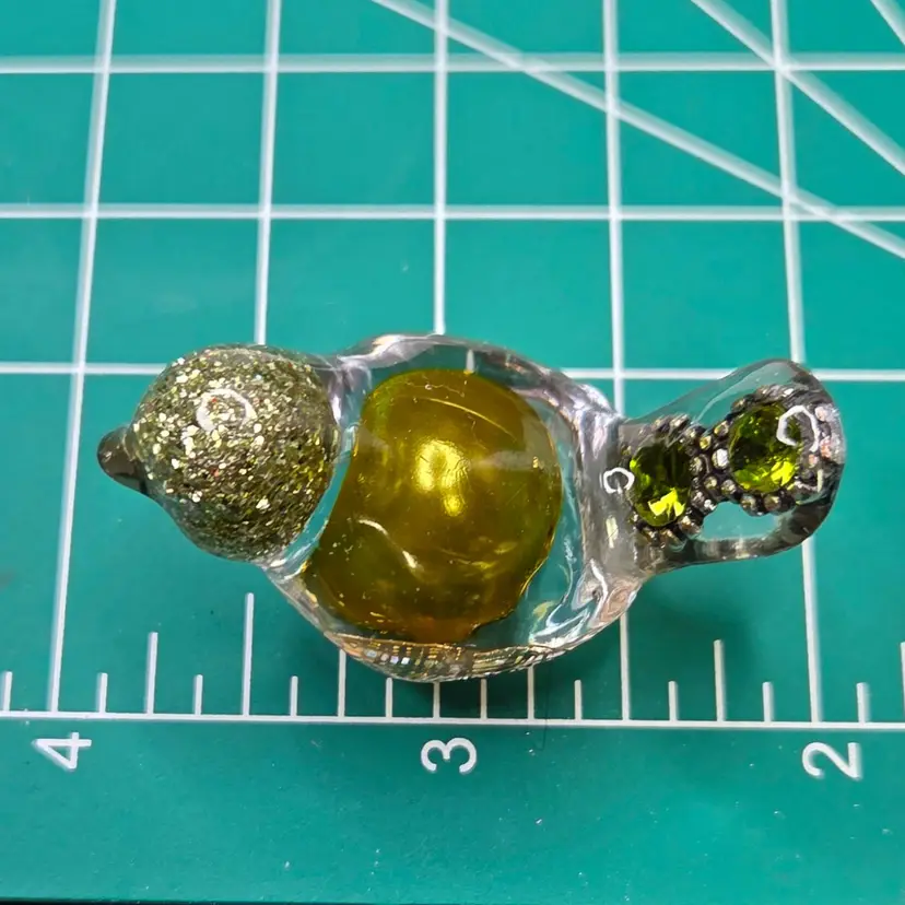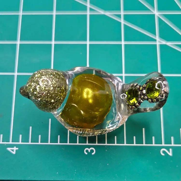 These tiny little birds are handmade from UV resin and bits of baubles and bling from my craft jewelry pile or whatever else I can throw in. No two are alike.
