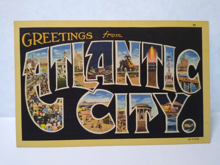 Size: Standard (5.5 x 3.5 in) Custom Bundle: No Continent: North America Region: New Jersey Country: USA Type: Linen Postcard Year Manufactured: 1945 Number of Items in Set: 1 Signed: No Original/Licensed Reprint: Original Occasion: Sayings & Quotes City: Atlantic City Time Period Manufactured: 1930-1945 Unit of Sale: Single Unit Era: Linen (1930-1945) Artist: Unknown Country/Region of Manufacture: United States Material: Paper Theme: Big Letter, Large Letter, Block Letters, Beach Town, Jersey Shore, Greetings, Elephant, Hotel & Restaurant, Boardwalk Features: Large Letter Postcard Subject: Large Letter Postage Condition: Unposted Brand/Publisher: Curt Teich Franchise: Does Not Apply