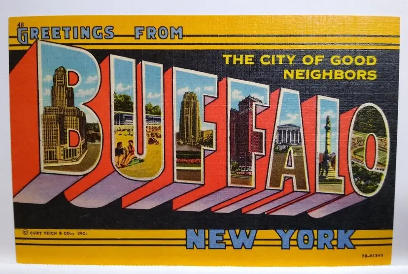 Size: Standard (5.5 x 3.5 in) Custom Bundle: No Continent: North America Region: New York Country: USA Type: Linen Postcard Year Manufactured: 1945 Number of Items in Set: 1 Signed: No Original/Licensed Reprint: Original Occasion: Sayings & Quotes City: Buffalo Time Period Manufactured: 1930's-1950's Unit of Sale: Single Unit Era: Linen (1930-1945) Artist: Unknown Country/Region of Manufacture: United States Material: Paper Theme: Big Letter, Large Letter, Block Letters, Agriculture, Cities & Towns, Greetings, Buildings Features: Large Letter Postcard Subject: Large Letter Postage Condition: Unposted Brand/Publisher: Curt Teich Franchise: None