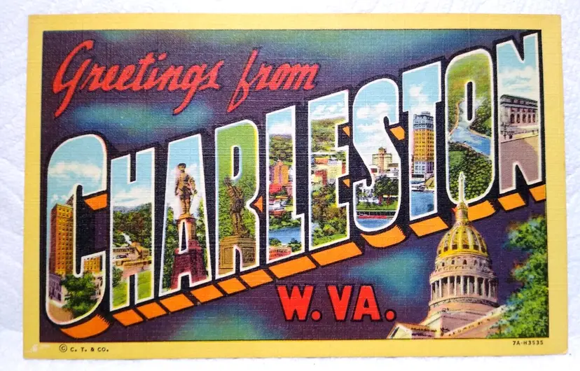 Number of Items in Set: 1 Unit of Sale: Single Unit Artist: Unknown Occasion: Sayings & Quotes Size: Standard (5.5 x 3.5 in) Signed: No Custom Bundle: No Material: Paper Year Manufactured: 1940 City: Charleston Original/Licensed Reprint: Original Brand/Publisher: Curt Teich Subject: Large Letter Continent: North America Type: Linen Postcard Era: Linen (1930-1945) Region: West Virginia Country: USA Theme: Agriculture, Architecture, Cities & Towns, Greetings, Roadside America, Social History, Tourism, Travel, Big Letter, Large Letter, Block Letters Time Period Manufactured: 1930's-1950's Country/Region of Manufacture: United States Postage Condition: Unposted