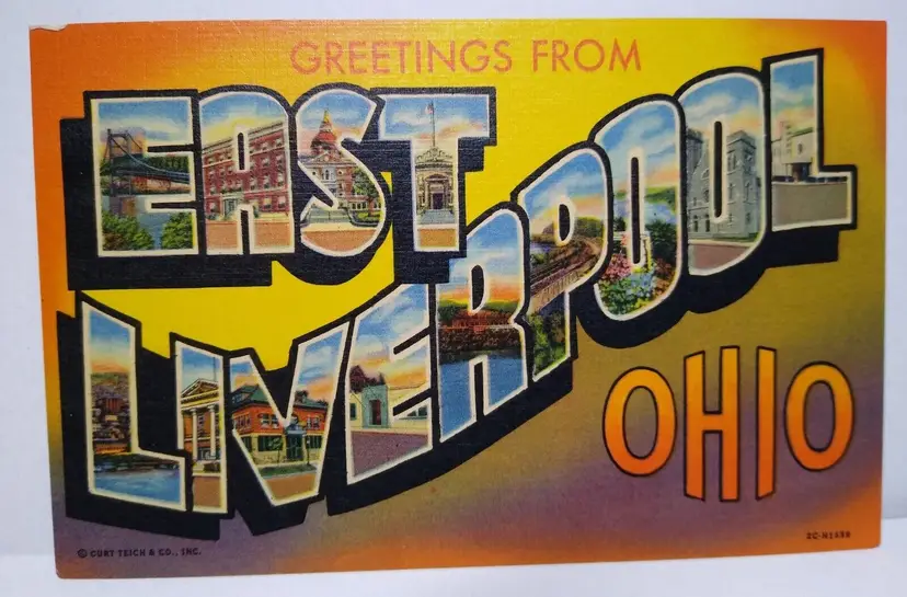 Number of Items in Set: 1 Unit of Sale: Single Unit Artist: Unknown Occasion: Sayings & Quotes Size: Standard (5.5 x 3.5 in) Signed: No Custom Bundle: No Year Manufactured: 1945 Material: Paper City: East Liverpool Original/Licensed Reprint: Original Franchise: None Brand/Publisher: Curt Teich Subject: Large Letter Continent: North America Type: Linen Postcard Era: Linen (1930-1945) Region: Ohio Country: USA Theme: Big Letter, Large Letter, Block Letters, Agriculture, Cities & Towns, Greetings Features: Large Letter Postcard Time Period Manufactured: 1930's-1950's Country/Region of Manufacture: United States Postage Condition: Unposted