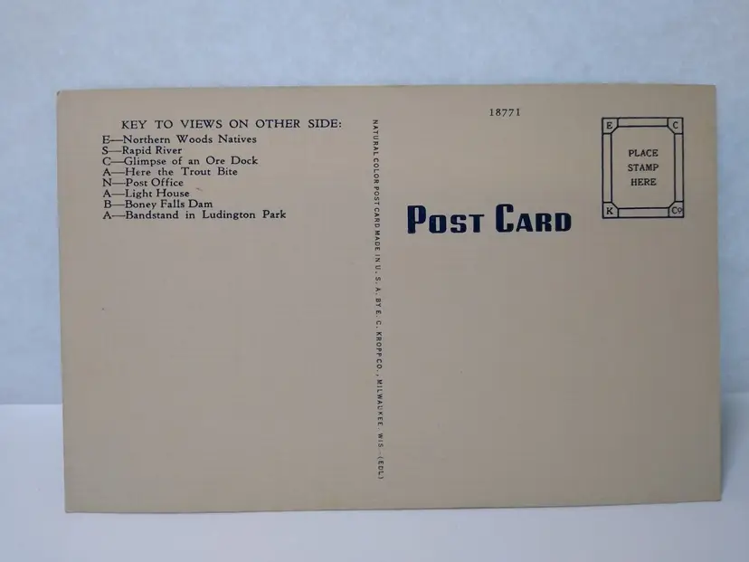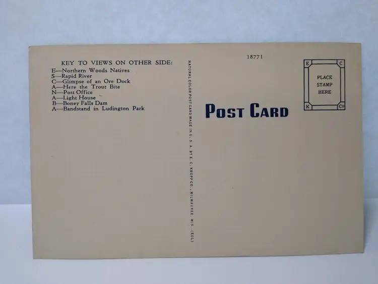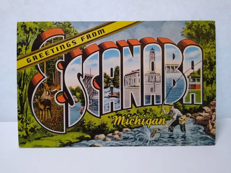 Size: Standard (5.5 x 3.5 in) Custom Bundle: No Continent: North America Region: Michigan Country: USA Type: Linen Postcard Year Manufactured: 1940 Number of Items in Set: 1 Signed: No Original/Licensed Reprint: Original Occasion: Sayings & Quotes City: Escanaba Time Period Manufactured: 1930's-1950's Unit of Sale: Single Unit Era: Linen (1930-1945) Artist: Unknown Country/Region of Manufacture: United States Material: Paper Theme: Big Letter, Large Letter, Block Letters, Buildings, Agriculture, Cities & Towns, Greetings, Hunting & Fishing Features: Large Letter Postcard Subject: Large Letter Postage Condition: Unposted Brand/Publisher: EC Kropp Franchise: None