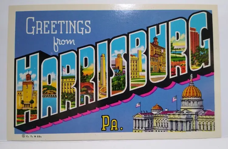 Size: Standard (5.5 x 3.5 in) Custom Bundle: No Continent: North America Region: Pennsylvania Country: USA Type: Printed (Lithograph) Year Manufactured: 1945 Number of Items in Set: 1 Signed: No Original/Licensed Reprint: Original Occasion: Sayings & Quotes City: Harrisburg Time Period Manufactured: 1930's-1950's Unit of Sale: Single Unit Era: Post-War (1945-Now) Artist: Unknown Country/Region of Manufacture: United States Material: Paper Theme: Big Letter, Large Letter, Block Letters, Greetings Features: Large Letter Postcard, Buildings, Scenic, Greetings, Greetings From, Big Letter Subject: Large Letter Postage Condition: Unposted Brand/Publisher: Curt Teich Franchise: Unknown