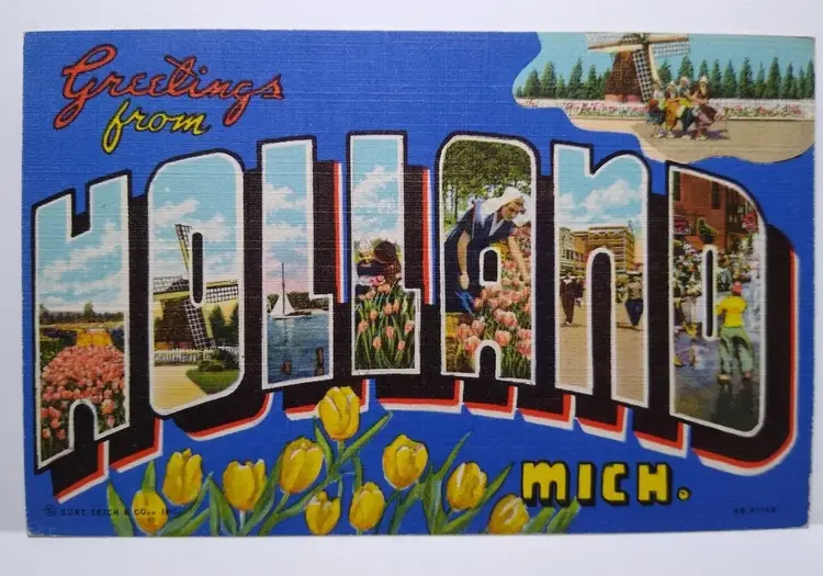 Size: Standard (5.5 x 3.5 in) Custom Bundle: No Continent: North America Region: Michigan Country: USA Type: Linen Postcard Year Manufactured: 1940 Number of Items in Set: 1 Signed: No Original/Licensed Reprint: Original Occasion: Sayings & Quotes City: Holland Time Period Manufactured: 1930's-1950's Unit of Sale: Single Unit Era: Linen (1930-1945) Artist: Unknown Country/Region of Manufacture: United States Material: Paper Theme: Big Letter, Large Letter, Block Letters, Buildings, Agriculture, Cities & Towns, Greetings Features: Large Letter Postcard Subject: Large Letter Postage Condition: Unposted Brand/Publisher: Curt Teich Franchise: None