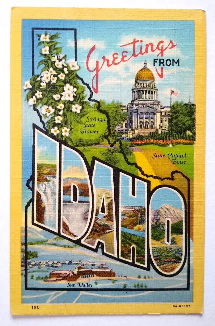 Number of Items in Set: 1 Unit of Sale: Single Unit Artist: Unknown Occasion: Sayings & Quotes Size: Standard (5.5 x 3.5 in) Signed: No Custom Bundle: No Year Manufactured: 1950 Material: Paper City: Unknown Original/Licensed Reprint: Original Franchise: Does Not Apply Brand/Publisher: Curt Teich Subject: Large Letter Continent: North America Type: Linen Postcard Era: Linen (1930-1945) Region: Idaho Country: USA Theme: Advertising, Agriculture, Architecture, Art, Cities & Towns, Greetings, Roadside America, Social History, Tourism, Big Letter, Large Letter, Block Letters Features: Large Letter Postcard Time Period Manufactured: 1930-1945 Country/Region of Manufacture: United States Postage Condition: Unposted