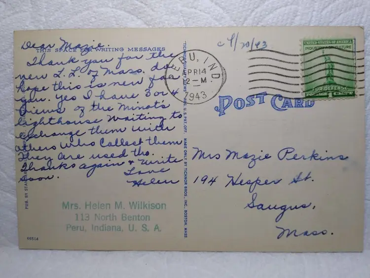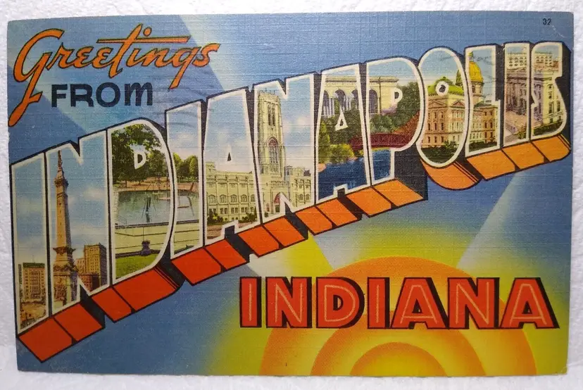 Number of Items in Set: 1 Unit of Sale: Single Unit Artist: Unknown Occasion: Sayings & Quotes Size: Standard (5.5 x 3.5 in) Signed: No Custom Bundle: No Year Manufactured: 1950 Material: Paper City: Indianapolis Original/Licensed Reprint: Original Franchise: Unknown Brand/Publisher: Tichnor Brothers Subject: Greetings Continent: North America Type: Linen Postcard Era: Post-War (1945-Now) Region: Indiana Country: USA Theme: Architecture, Cities & Towns, Greetings, Landscapes, Social History, Big Letter, Large Letter, Block Letters, Buildings Features: Large Letter Postcard, Greetings, Greetings From, Big Letter Time Period Manufactured: 1930's-1950's Country/Region of Manufacture: United States Postage Condition: Posted