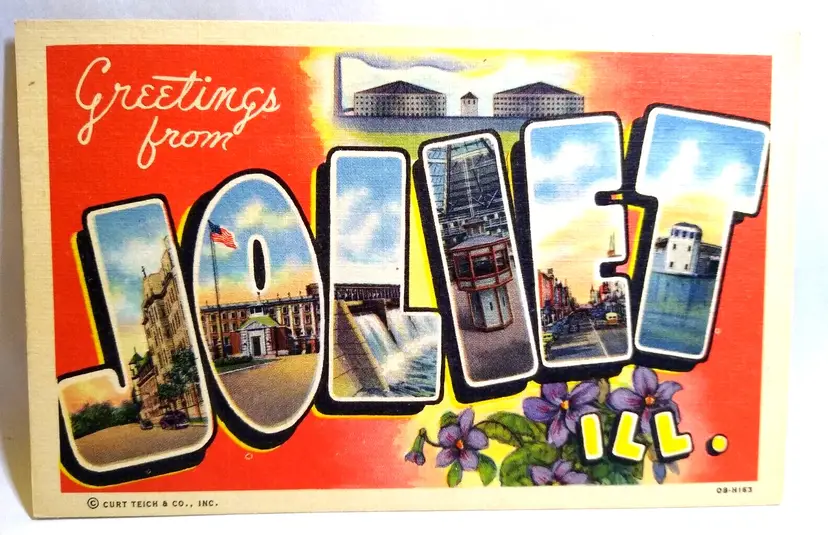 Number of Items in Set: 1 Unit of Sale: Single Unit Artist: Unknown Occasion: Sayings & Quotes Size: Standard (5.5 x 3.5 in) Signed: No Custom Bundle: No Year Manufactured: 1940 Material: Paper City: Joliet Original/Licensed Reprint: Original Franchise: None Brand/Publisher: Curt Teich Subject: Large Letter Continent: North America Type: Printed (Lithograph) Era: Linen (1930-1945) Region: Illinois Country: United States Theme: Agriculture, Architecture, Art, Cities & Towns, Cowboys & Western, Greetings, Roadside America, Tourism, Travel, Big Letter, Large Letter, Block Letters Features: Large Letter Postcard, Divided Back Time Period Manufactured: 1930's-1950's Country/Region of Manufacture: United States Postage Condition: Unposted