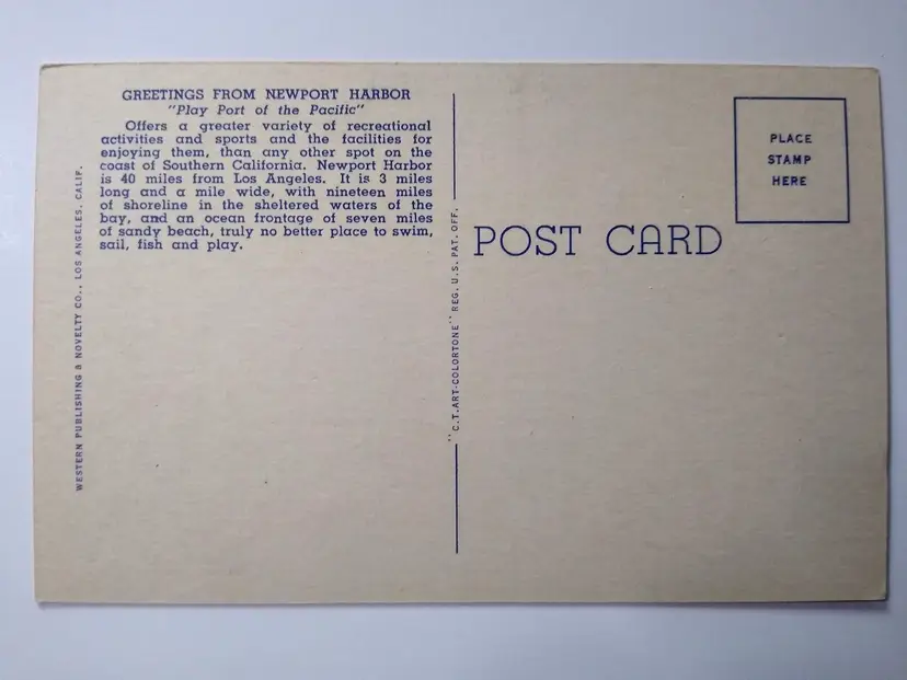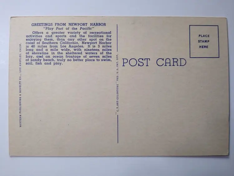 Features: Divided Back, Large Letter Postcard, Cities, Towns Custom Bundle: No Time Period Manufactured: 1930's-1950's Country: USA Subject: Large Letter Number of Items in Set: 1 Occasion: Sayings & Quotes Era: Linen (1930-1945) Size: Standard (5.5 x 3.5 in) Region: California Country/Region of Manufacture: United States Material: Paper Brand/Publisher: Curt Teich Year Manufactured: 1940 Postage Condition: Unposted City: Newport Harbor Artist: Unknown Original/Licensed Reprint: Original Franchise: None Continent: North America Signed: No Unit of Sale: Single Unit Theme: Agriculture, Big Letter, Block Letters, Boat, Cities & Towns, Greetings, Lakes, Large Letter, Nautical, Sailboat, Ship, Skipper Type: Linen Postcard