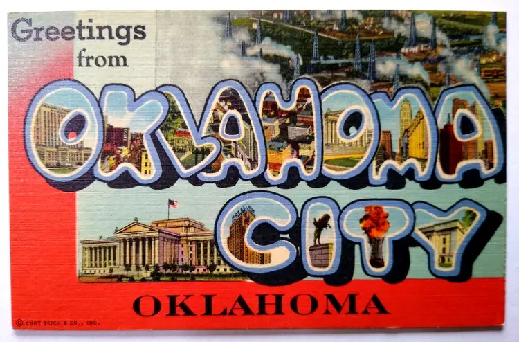 Number of Items in Set: 1 Unit of Sale: Single Unit Artist: Unknown Occasion: Sayings & Quotes Size: Standard (5.5 x 3.5 in) Signed: No Custom Bundle: No Year Manufactured: 1940 Material: Paper City: Oklahoma City Original/Licensed Reprint: Original Franchise: None Brand/Publisher: Curt Teich Subject: Large Letter Continent: North America Type: Printed (Lithograph) Era: Linen (1930-1945) Region: Oklahoma Country: United States Theme: Agriculture, Architecture, Art, Cities & Towns, Cowboys & Western, Greetings, Roadside America, Tourism, Travel, Big Letter, Large Letter, Block Letters Features: Large Letter Postcard, Divided Back Time Period Manufactured: 1930's-1950's Country/Region of Manufacture: United States Postage Condition: Unposted
